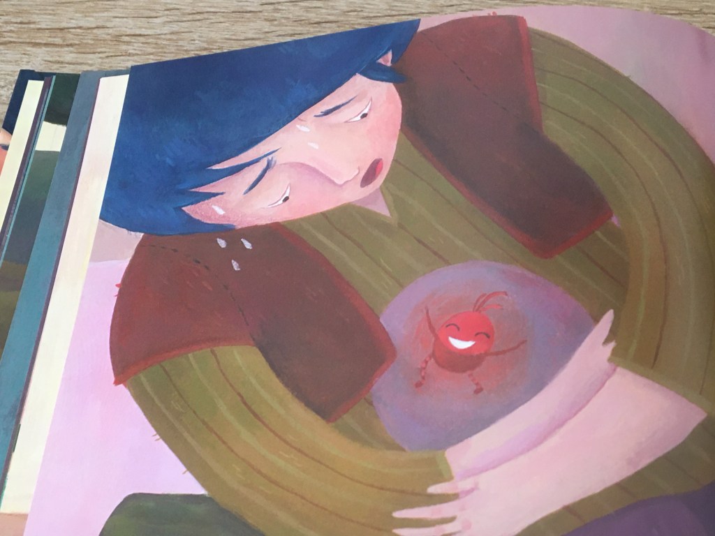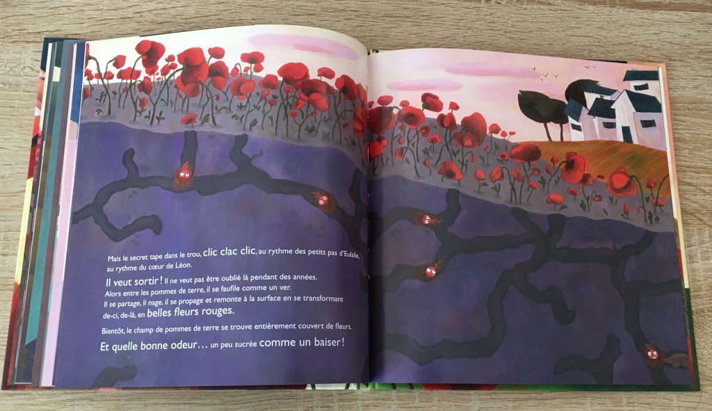 Vaste sujet que la gestion des sentiments. On voit fleurir de plus en plus de livres-albums-films sur le sujet des émotions. C’est bien mais quand il s’agit d’amour, on aurait bien besoin d’un mode d’emploi. Qu’est-ce que cette histoire nous apprend ? Qu’un amour naissant connaît différents moments qui ne laisseront pas son humain indifférent. On commence par un peu de déni, on s’active pour ne plus y penser, on se met en colère pour l’oublier, on croit s’en être débarrassé et non. Rien à faire. Le sentiment est toujours là. En prime il se fait sentir dans le corps (ah les fameux papillons dans l’estomac…oups, Léon n’a pas eu l’air d’apprécier la sensation).