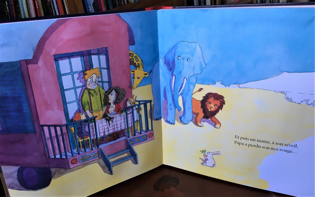 Qui dit clown dit drôleries, pitreries et….nez rouge of course ! Sauf que dans ce cirque, le clown se réveille un matin sans son nez rouge. Son fils nous raconte comment soudainement tout le monde s’agite : où peut-il être ? Mais impossible de le retrouver. Le spectacle commence, le clown s’approche de la piste sans son nez et, c’est un bide.