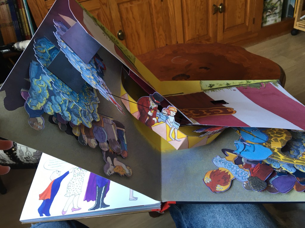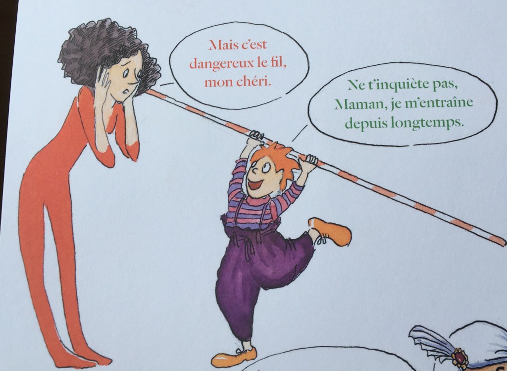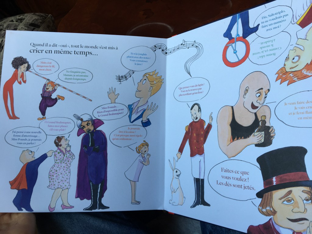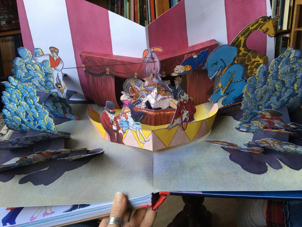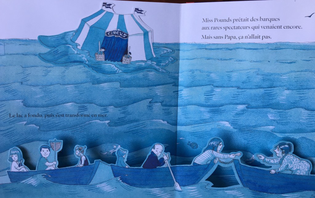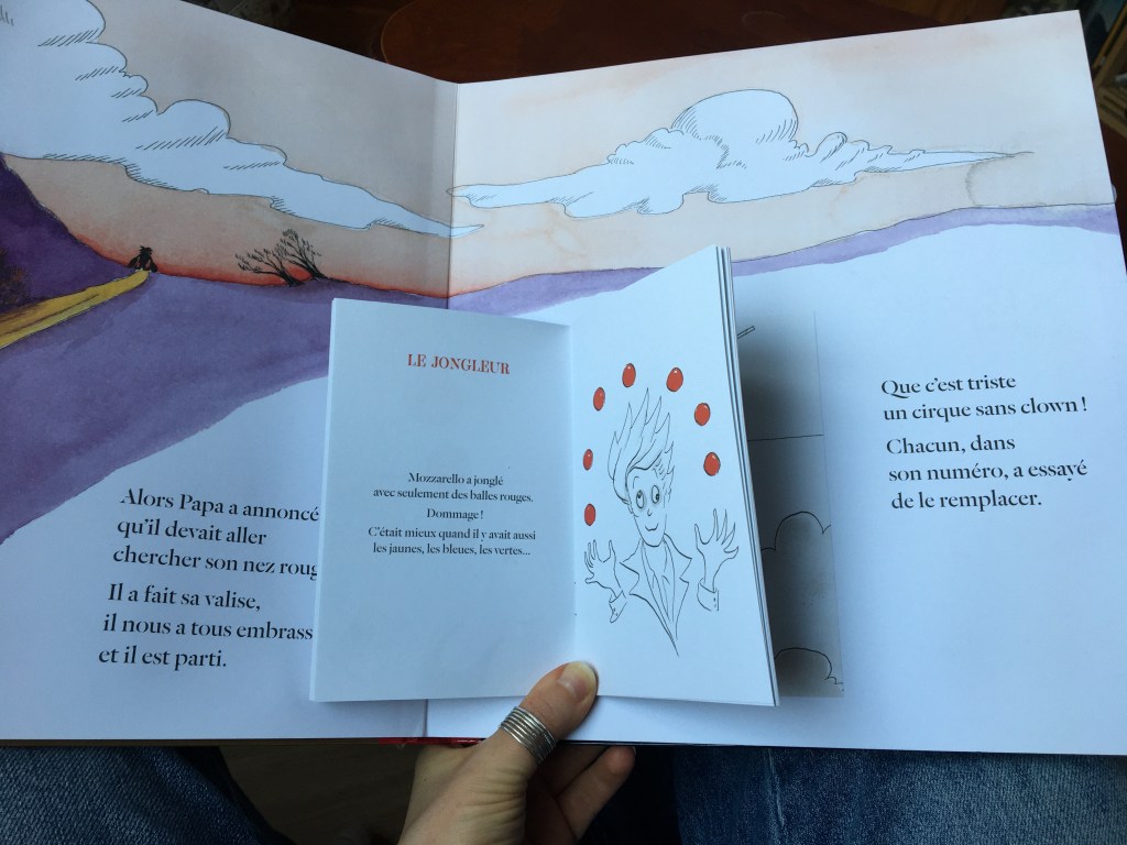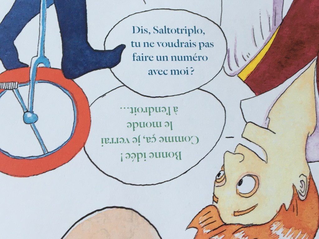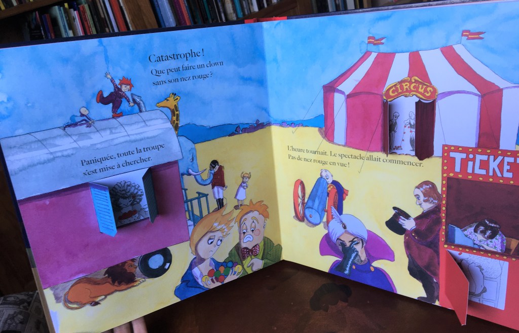 J’applaudis Jean-Léonard de Meuron, Véronique Peccoud et les Editions Courtes et Longues pour ce spectacle. (ça tombe drôlement bien pour un album qui s’intitule Chapiteau !) Entre les volets, les flaps, les animations et les pop-ups, on en prend plein les yeux et on s’amuse à chaque page.