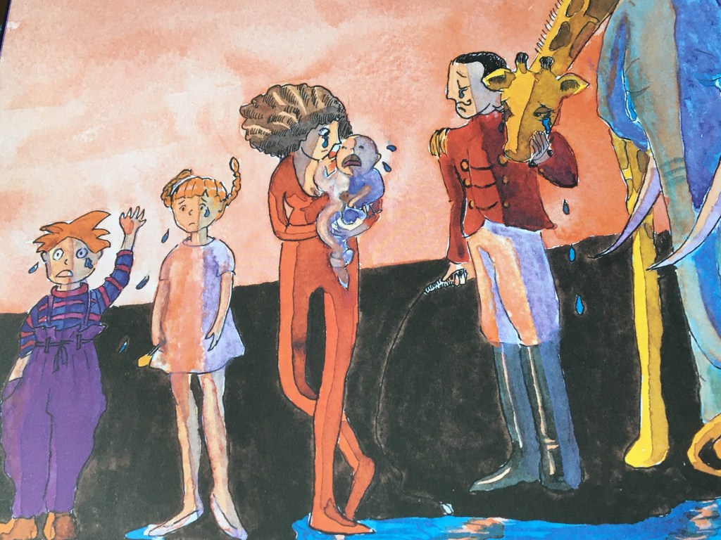 Voilà le cirque orphelin de son clown. Bien que chacun s’essaye à le remplacer, personne n’y parvient. Le désespoir envahit le moral des artistes. Hommes et animaux pleurent : Alice et ses larmes inondantes ont de la concurrence. Le cirque est débordant de spleen. L’hiver arrive et entre les bottes et les patins, rien n’y fait : sans clown le cirque ne semble plus bon à rien. Trop de larmes, trop d’eau : le cirque est submergé et le naufrage guette. Où est-il le clown ? Quand rentre-t-il ?