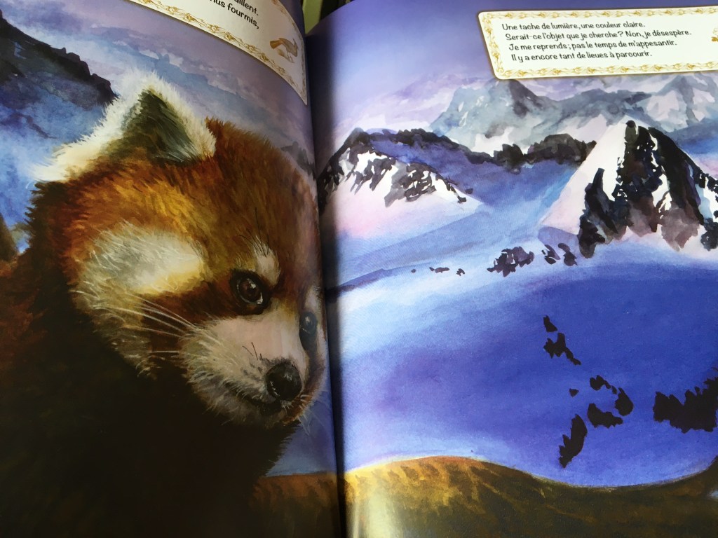 C’est une histoire charmante et tout en douceur. Quelle générosité chez ce panda roux ! Point de prétention, je soupçonne même chez lui un grand besoin de reconnaissance. Après tout il est différent. Il a des ailes : ça n’est pas classique, pour ne pas dire inhabituel. Bambou lui-même a été un peu dérouté de se découvrir cette particularité. Voler pour voler c’est bien gentil mais en fait ça ne mène nulle part. Donc tant qu’à avoir un don du ciel exceptionnel, autant en faire quelque-chose d’utile pour les autres (et un peu pour soi).