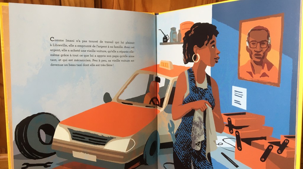 Imani vit au Gabon, son pays d’adoption. Elle exerce le métier de conductrice de taxi, avec une voiture pas toute jeune qu’elle a réparée toute seule. Elle a appris avec son papa mécanicien, qui est resté au pays, tout comme son amoureux. Sur son taxi elle a inscrit « Après l’attente…le bonheur ! », parce que son papa la disait souvent cette phrase.