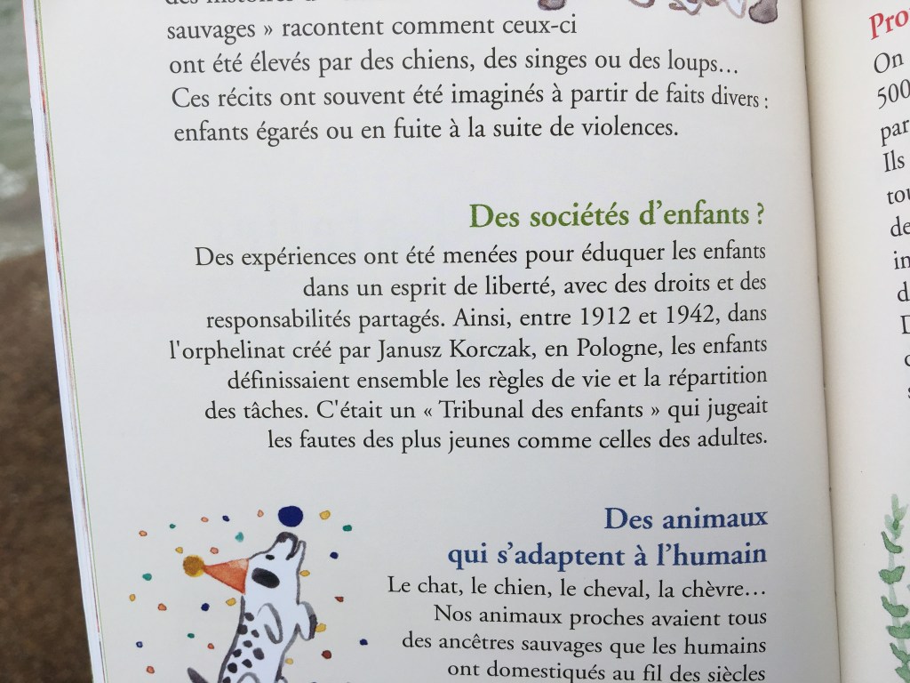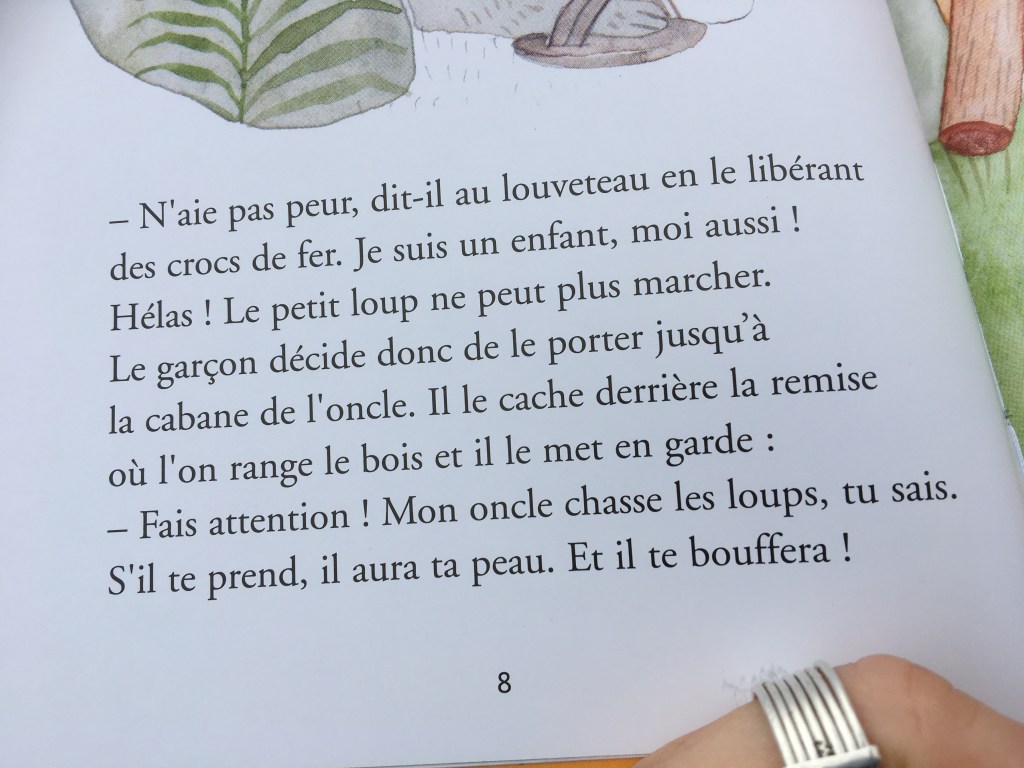 A la fin du livre, Rue du Monde a placé un petit dossier : l’atelier des infos. Les enfants y trouveront des petits paragraphes sur quelques thèmes que l’histoire aborde ou qui sont en périphérie proche, comme la protection et le mode de vie des loups, les sociétés d’enfants…