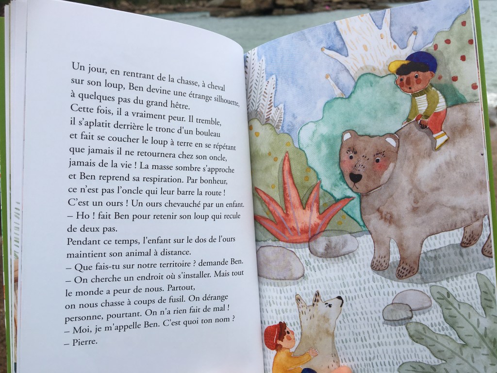 Un jour il rencontre Pierre et son ours. A deux on est moins seul…Ben invite Pierre et son ours à rester avec lui et son loup. D’autres enfants, d’autres animaux les rejoignent. Une communauté se construit, se consolide, s’accueille, s’épaule…Personne n’est laissé au bord du chemin. Des plantations naissent, la solidarité se respire, les différences se conjuguent dans une respectueuse multiplication des possibles. La communauté des enfants et des animaux libres est née !