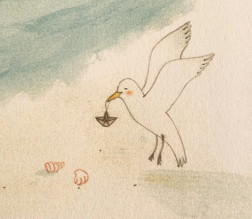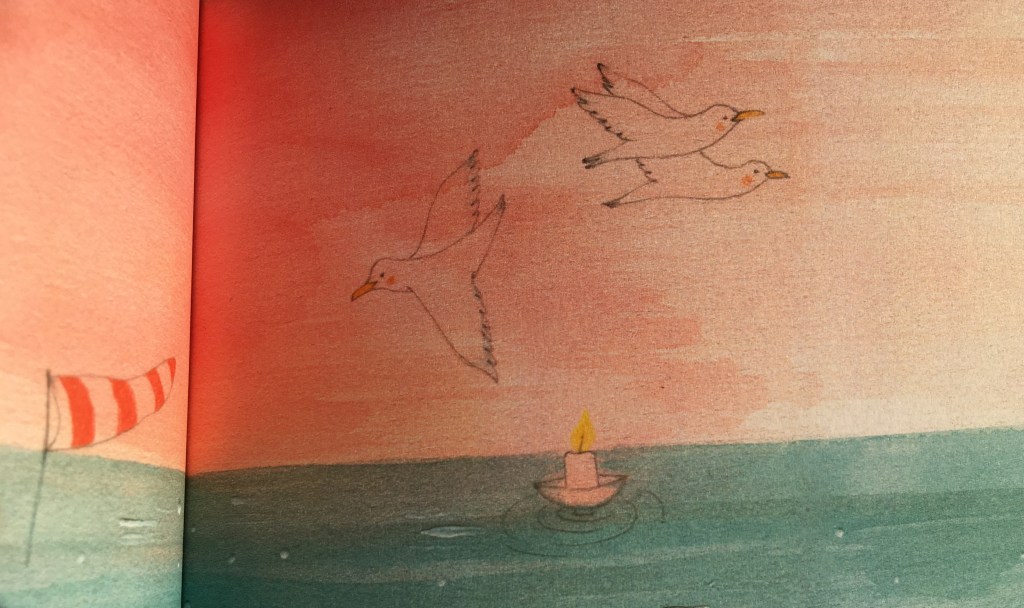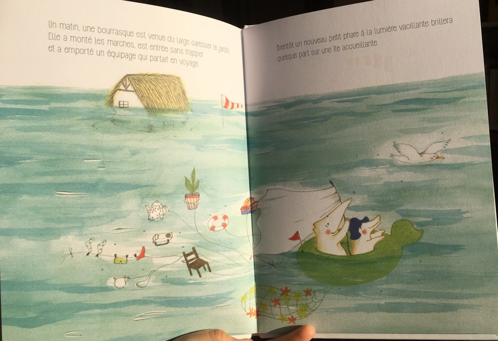 Depuis l’album La toute petite voiture de Jeanne (mon article à retrouver par ici: https://clarasurlalune.com/2020/02/12/la-toute-petite-voiture-de-jeanne/ ) , je suis conquise par le duo Marie Tibi et Baptistine Mésange. Lors de mes vacances bretonnes, dans une librairie j’ai rencontré Hoel. Nous nous sommes aperçus, reconnus : nous aimons tous les deux l’océan et les Fous de Bassan !