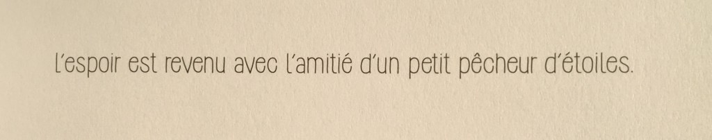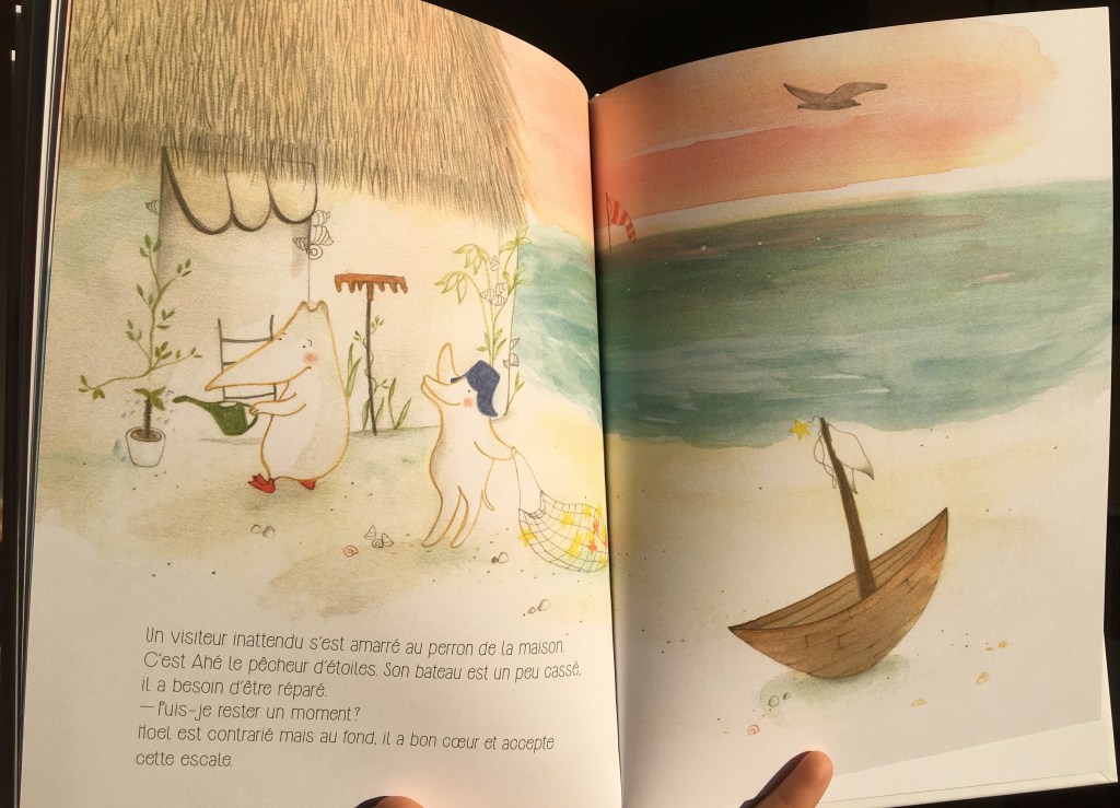 Heureusement, pour lui, les intempéries (ou le destin) veillent et un jour, Ahé accoste sur l’île. Il est pêcheur d’étoiles et son bateau est un peu abîmé. Il doit le réparer donc il demande à Hoel s’il peut rester. La réponse vous vous en doutez…