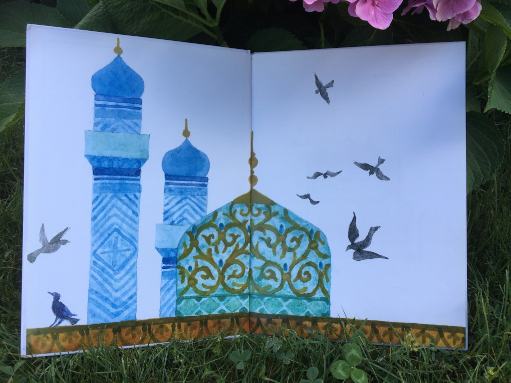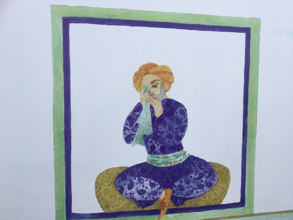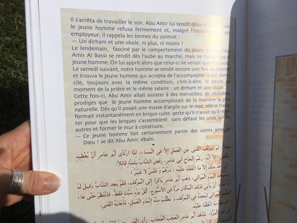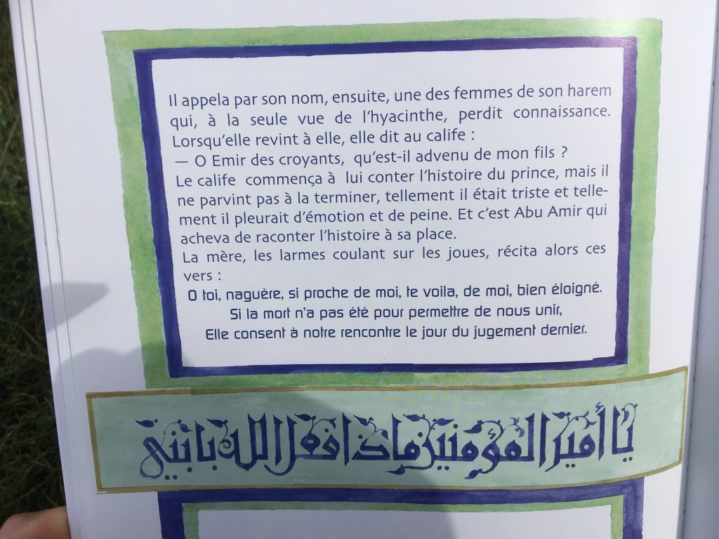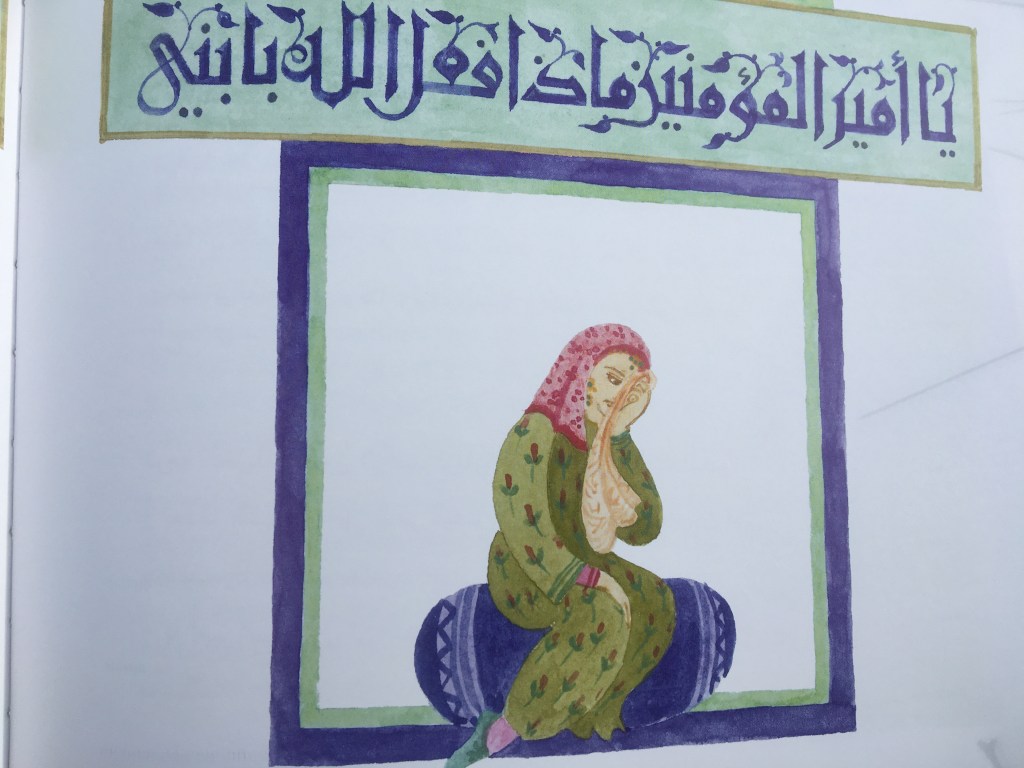 Une autre dimension nous attend dans ce conte : un dépaysement merveilleux qui est conduit par les illustrations délicatement persanes de Françoise Joire. Arabesques et écriture arabe participent à poser l’ambiance orientale tantôt somptueuse, tantôt humble. L’album est bilingue : français et arabe se côtoient comme une évidence.