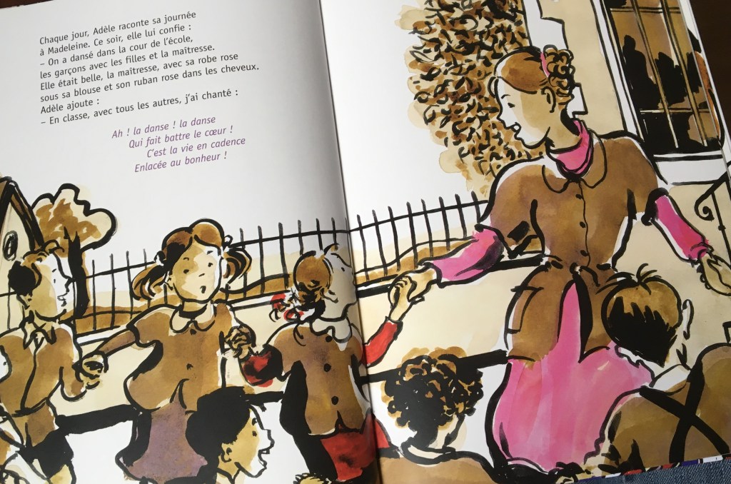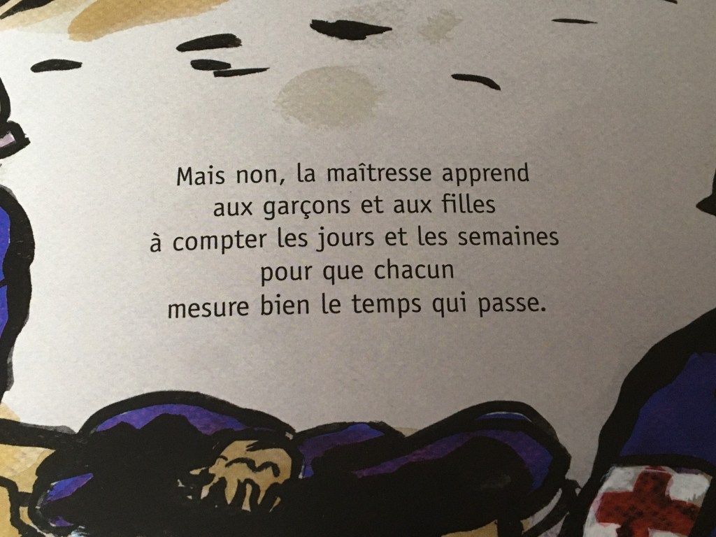 Pour les enfants c’est l’école jour après jour, la maîtresse dans sa robe rose qui fait danser les enfants, les mathématiques. Adèle grandit et va tous les jours à l’école, parce que la vie doit continuer.