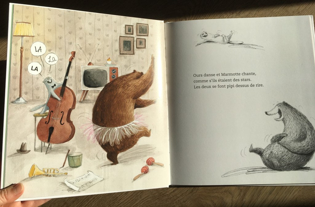 C’est l’histoire de deux amis « meilleurs-pour-la-vie » : Ours et Marmotte passent beaucoup de temps ensemble à faire pleiiiiin de choses trop géniales : danser, rigoler, jouer aux fléchettes, imaginer des trucs…C’est le pied, jusqu’à ce qu’Ours dise à Marmotte que Canard va se joindre à eux.