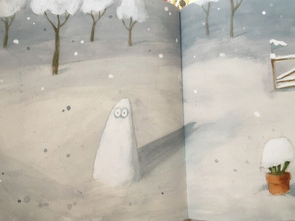 Dehors il commence à neiger…Marmotte, très contente du tour qu’elle vient de jouer s’active pour distraire Ours…lequel est inquiet de ne pas voir Canard arriver. Mais…le tour prend un virage inattendu et Marmotte de vivre une des pires peurs de sa vie :
