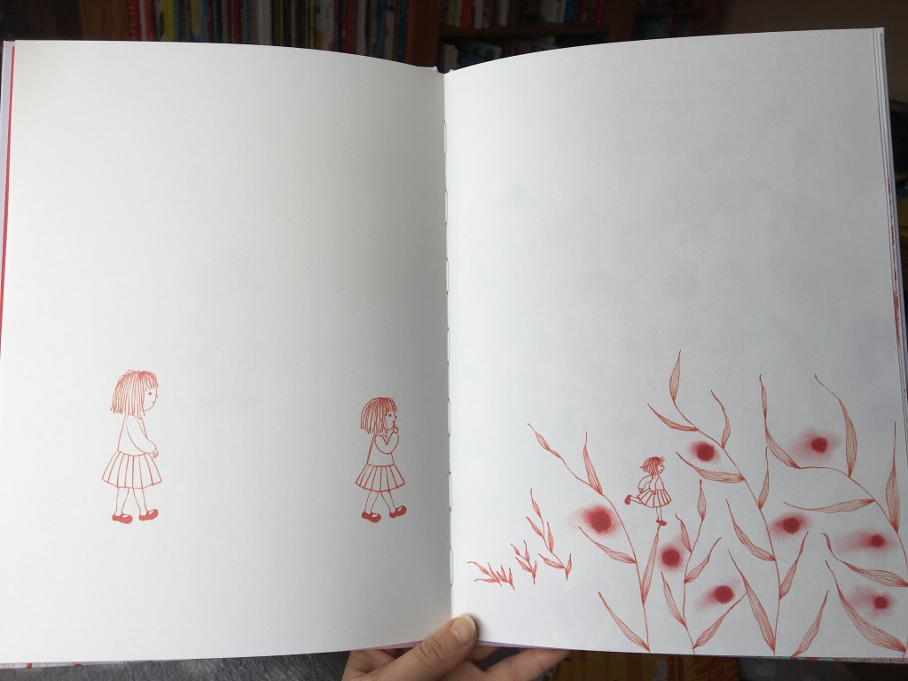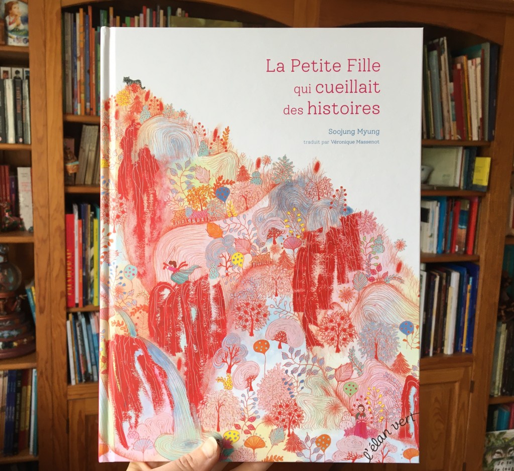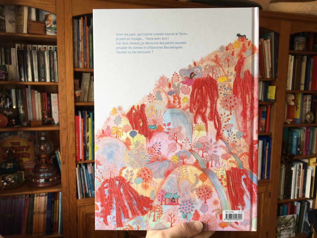 La jupe de l’enfant tourne, tourne et nous entraîne dans un voyage à la rencontre des histoires. La poésie accompagne chaque rencontre sur les différents continents. Soojung Myung nous offre un ravissement visuel tout en mouvement et légèreté comme le ferait le tissu d’une jupe tourbillonnante. Une double page abrite deux contes : les reconnaitrez-vous ?