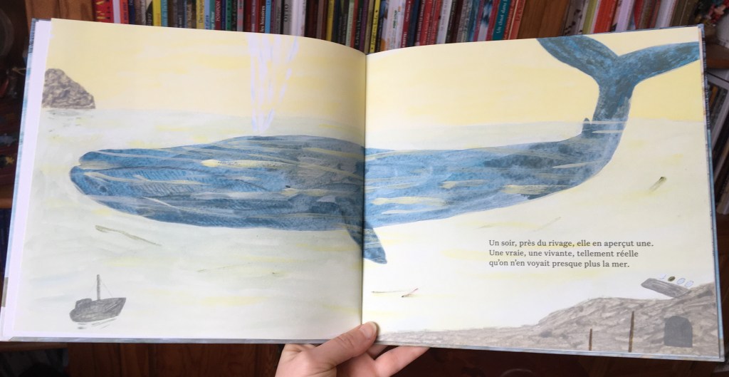 Une petite fille qui rêve d’amitié avec le plus gros mammifère marin : côté contraste c’est réussi ! Tout les sépare : qu’importe. Par amitié Caio dépasse tous les obstacles qui la sépare de l’animal. Je la comprends : l’image de la baleine est fascinante. Et si magnétique qu’elle fait oublier toute prudence. On frôle la catastrophe, la portée dramatique place le lecteur en apnée. La profondeur de l’affection peut être puissante mais elle est peu de chose quand on n’a pas pied.