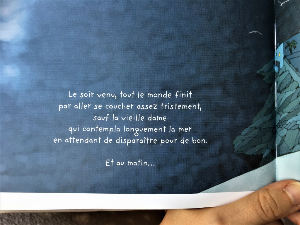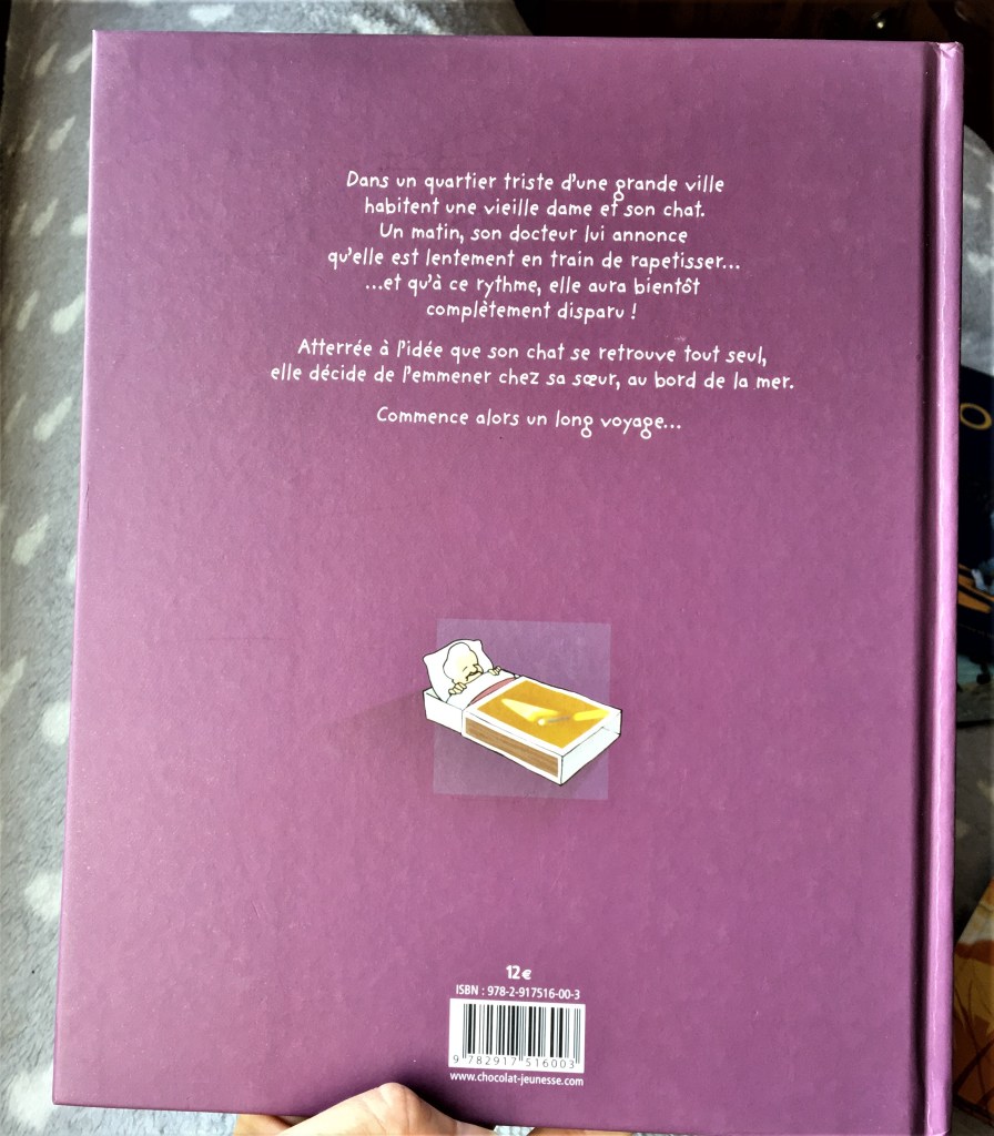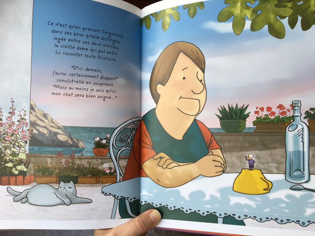 Le lendemain matin, après un temps de négociation pour ne pas finir croquée, la vieille dame et Gorgonzola reprennent leur chemin. Quand ils arrivent, l’heure est au soulagement : Mission accomplie. Madame se prépare à disparaître l’esprit en paix puisque le chat est confié à des mains bienveillantes. C’est face à la mer que la vieille dame passe sa dernière soirée. Dernière ?