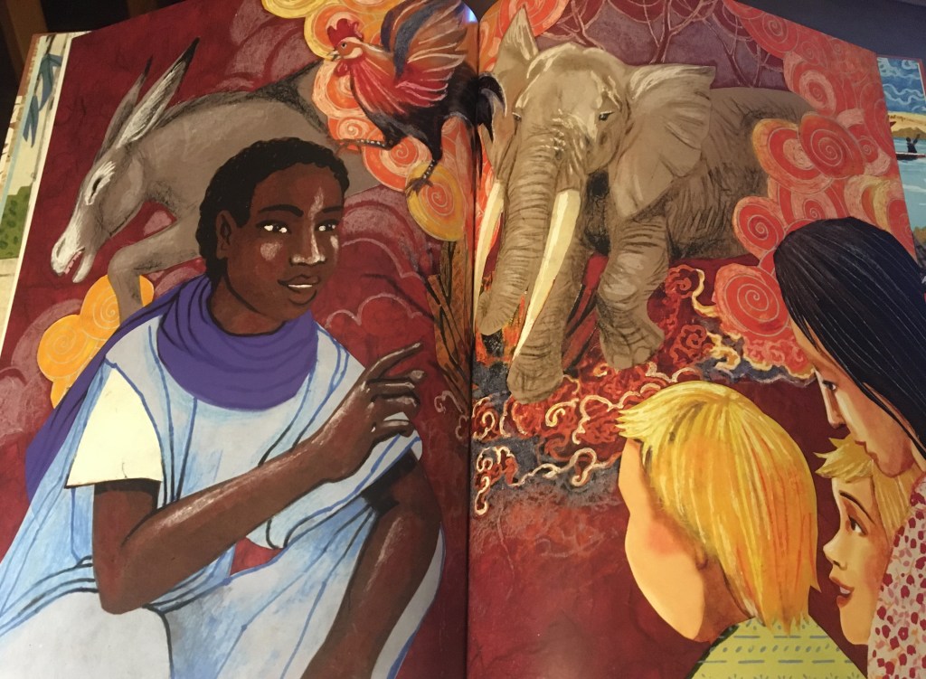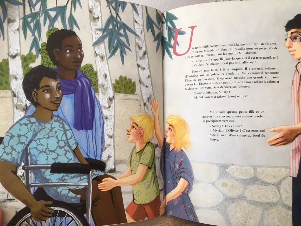 Visite après visite, profitant de la bienveillance de la famille toubab, Sidi raconte comme sa grand-mère le faisait au village. Les récits de tradition orale animent la curiosité et l’imagination des enfants. Un jour la petite Myriam tend un livre à Sidi. Elle voudrait qu’il lui lise une histoire. Sidi, embarrassé, tente une pirouette en encourageant la fillette à lire elle-même. La ruse ne prend pas et Sidi – qui ne sait pas lire – donne le change en inventant un récit à partir des images.