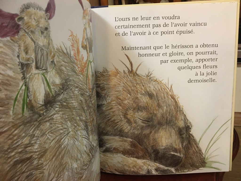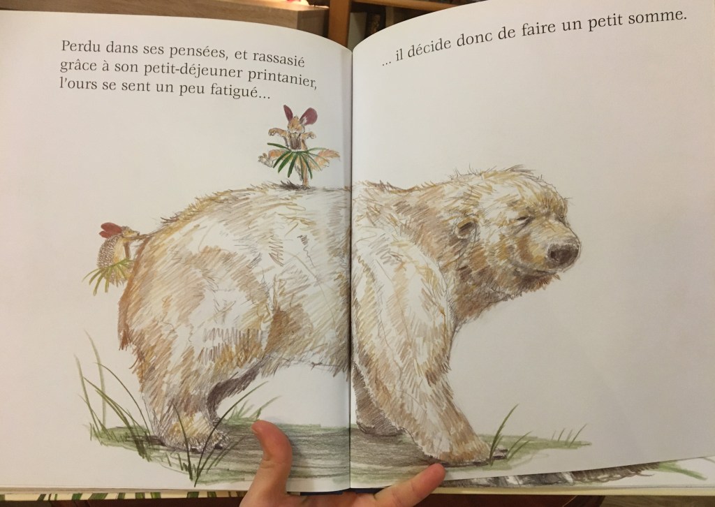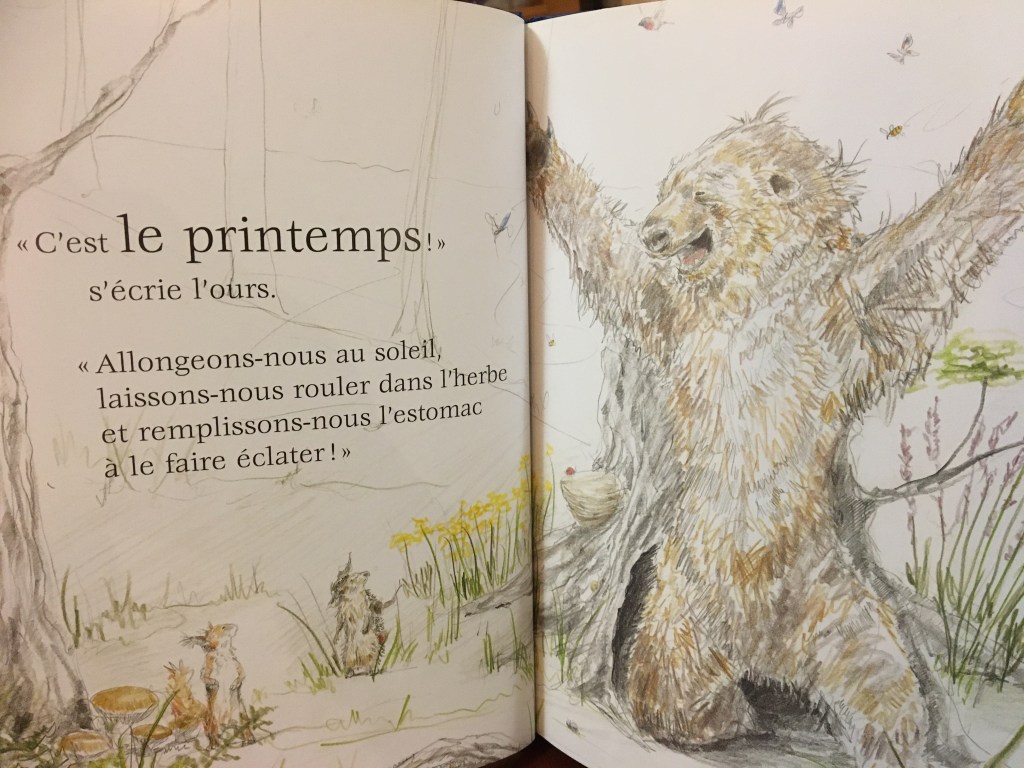 Ours qui lui répond : « C’est le printemps ! ». Hérisson étant lui aussi sorti de son hibernation, les trois amis sont heureux de leurs retrouvailles. Mais après un si long hiver, il faut penser à se nourrir. Si l’écureuil fait le fou fou, hérisson semble habité par une étrange langueur. Il est tombé amoureux, là-bas près de l’étang, mais la belle ne l’a pas remarqué.