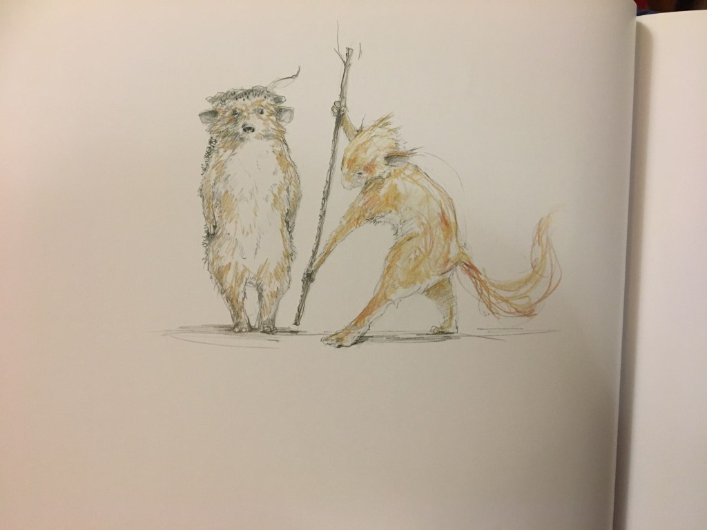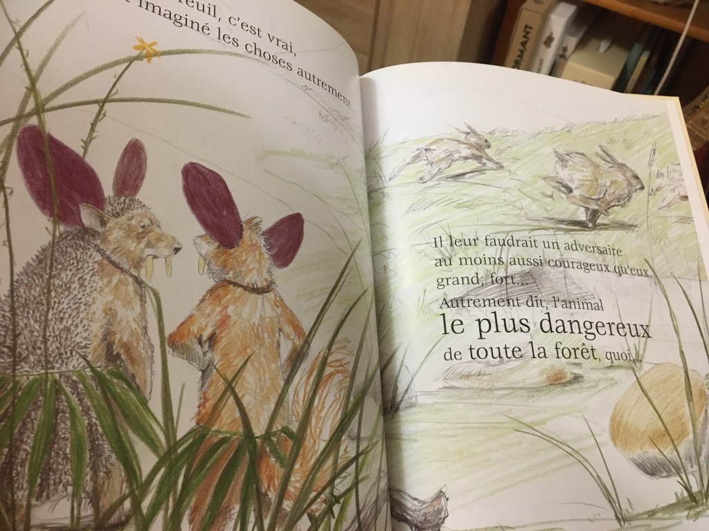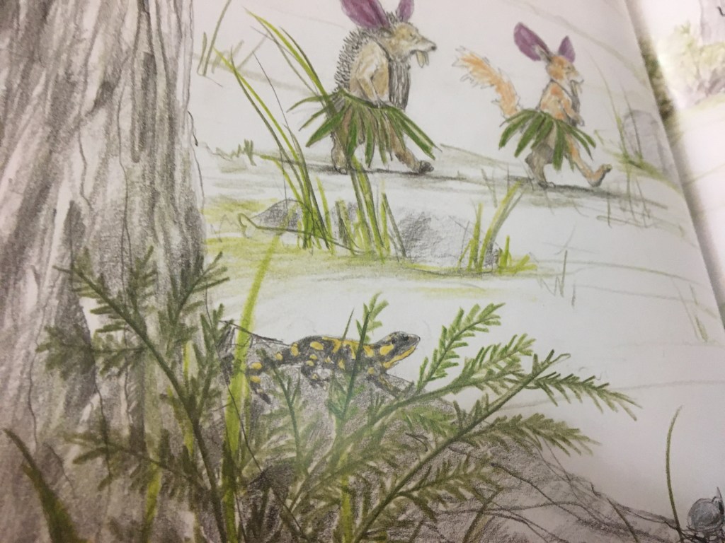 Il y a aussi un joli clin d’œil : à trop en faire, gare au ridicule ! Rester soi, c’est déjà très bien. Merci Sebastian Meschenmoser, de nous donner tant à raconter via vos illustrations crayonnées où se dissimulent 1001 petits détails qui nourrissent l’histoire. Le plaisir de feuilleter encore et encore cet album est intact j’en découvre à chaque nouvelle lecture-observation !