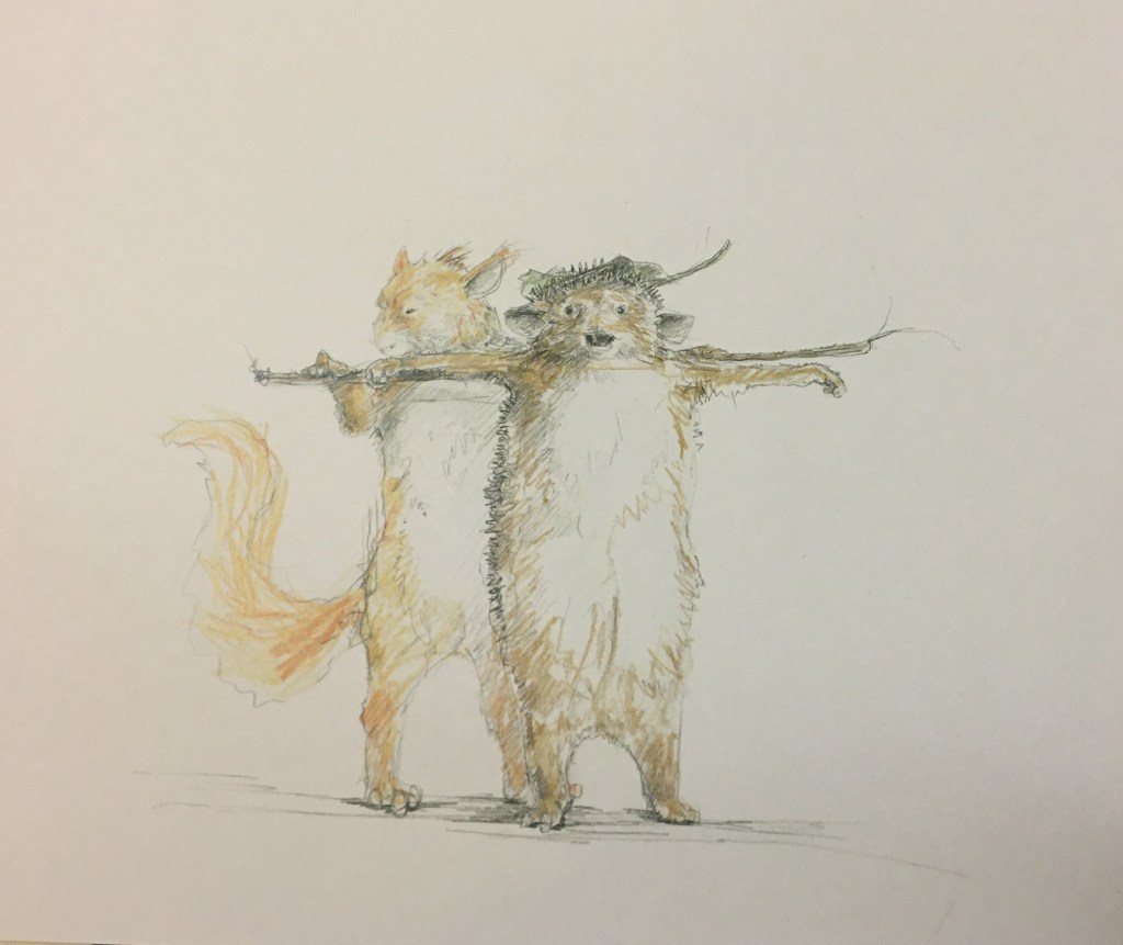Comment attirer son attention ? Heureusement, il peut compter sur son ami l’écureuil, qui se coupe en quatre et plus encore pour donner à Hérisson toutes ses chances d’impressionner positivement la dame !