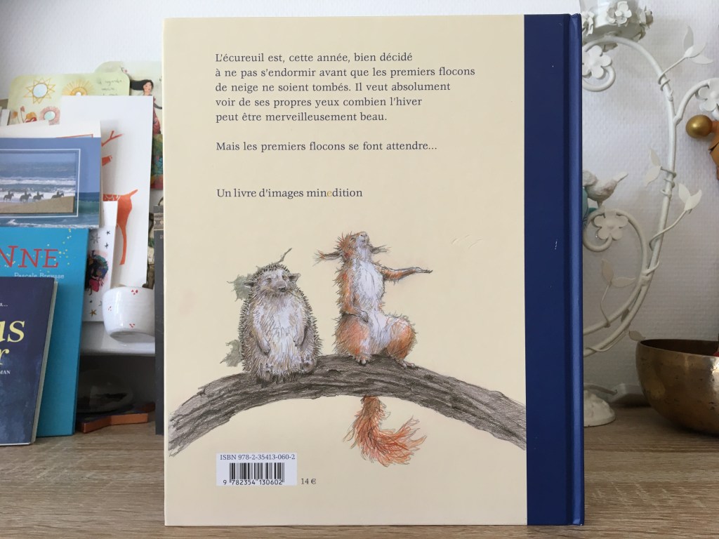 D’ordinaire en hiver les animaux hibernent. Mais Bouc a raconté à l’écureuil la beauté du paysage enneigé. Depuis, le petit animal roux fait tout ce qu’il peut pour empêcher Morphée de passer. Comme la curiosité est contagieuse, Hérisson puis Ours se joignent à lui. A eux trois, le premier flocon n’a aucune chance de leur échapper. Encore faudrait-il que les trois amis sachent de quoi il s’agit…