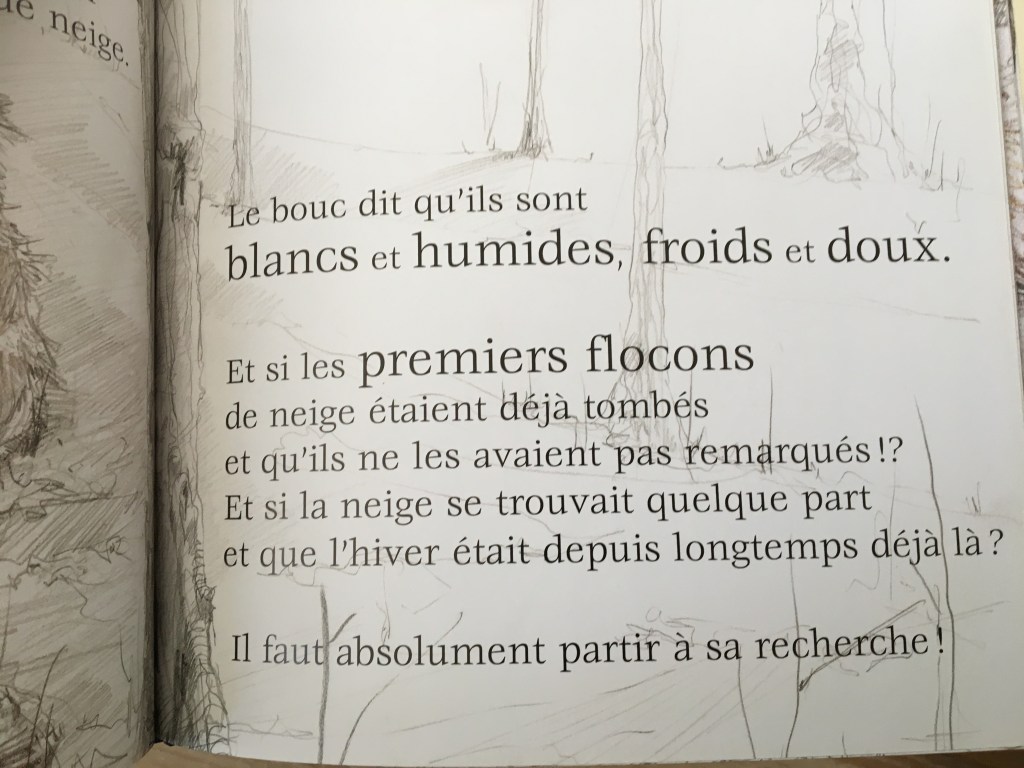 Impatience et enthousiasme des premières fois : voilà ce qui fait vibrer cette histoire ! L’excitation qui précède la découverte de l’hiver est communicative. Les hypothèses vont bon train et en réalité, il y a bien des choses qui répondent à la description « (…) blancs et humides, froids et doux. ». Cocasseries en images en écho aux interprétations décalées, le dénouement, heureusement, ne se fera pas trop attendre !
