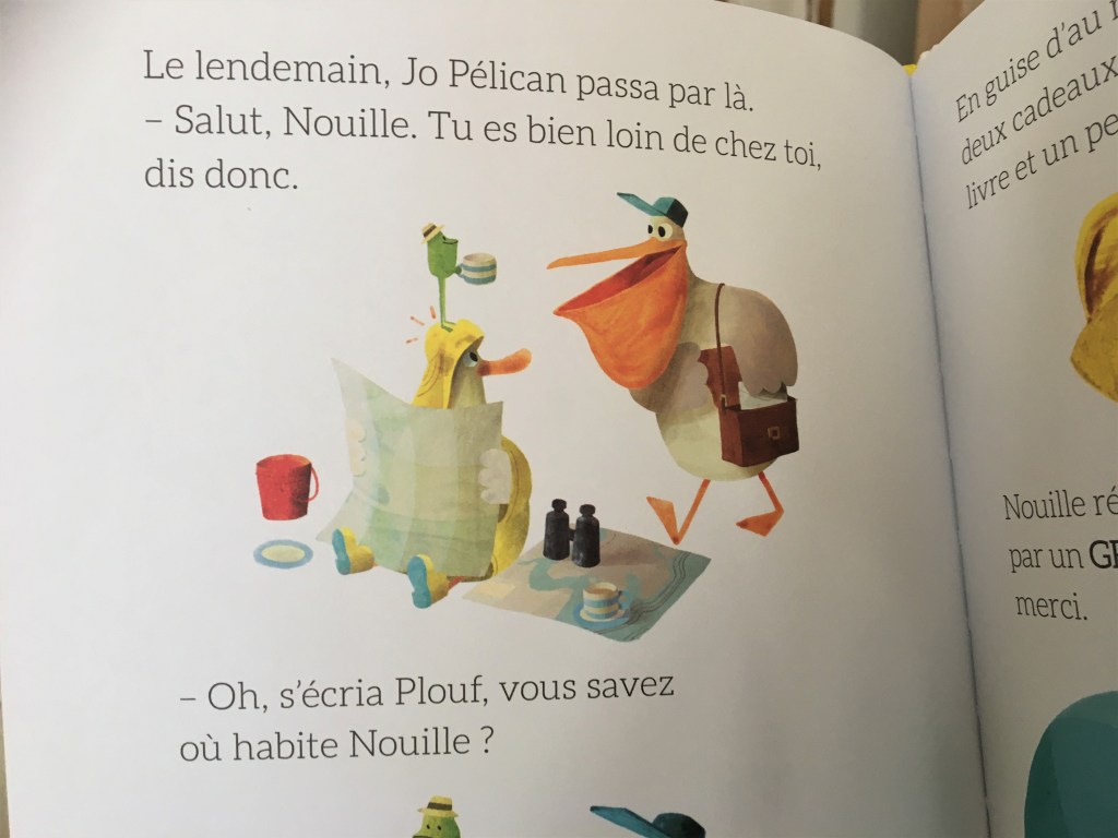 Ensemble ils se mettent à la recherche de la maison de Nouille mais personne ne semble savoir où habite la petite grenouille. Qu’à cela ne tienne, Plouf accueille Nouille avec joie. Jusqu’à ce que Pélican passe par là, et ramène Nouille chez lui. Plouf de se sentir bien seul soudain…