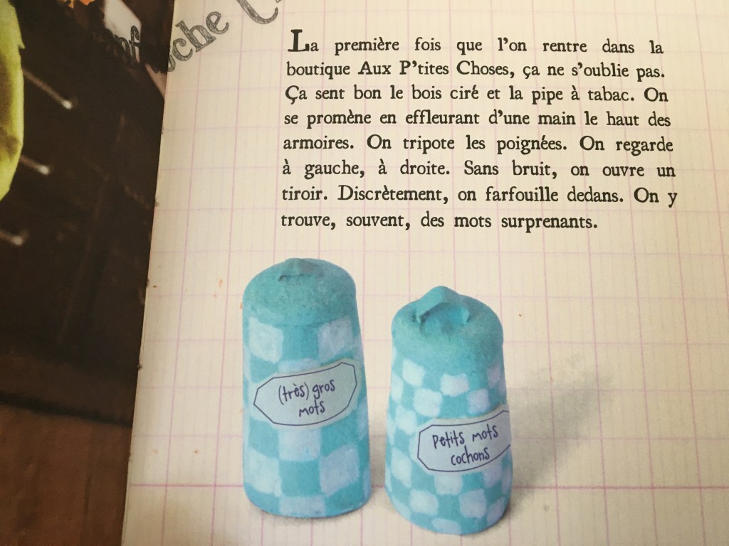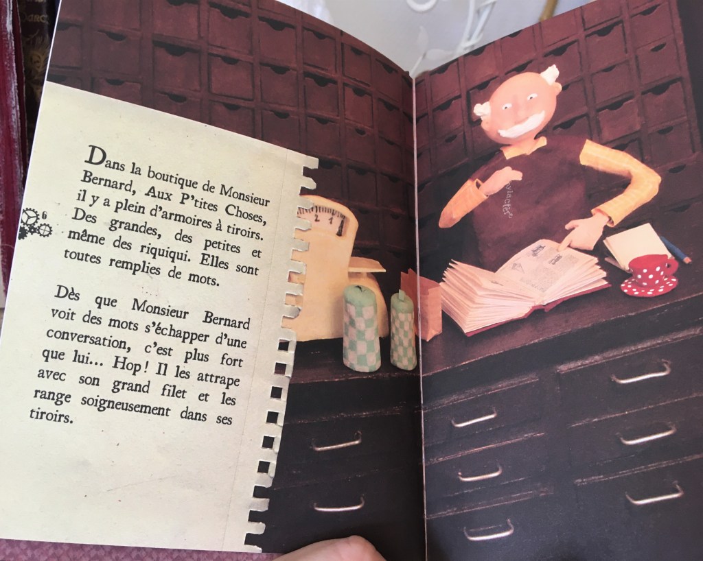 Dans la boutique de Monsieur Bernard, on trouve plein de « P’tites choses » dans les tiroirs. La spécialité de Monsieur Bernard ce sont les mots. Il vous en propose de toutes les sortes : grands, petits, riquiquis, joyeux, ambitieux, curieux…il suffit de demander !