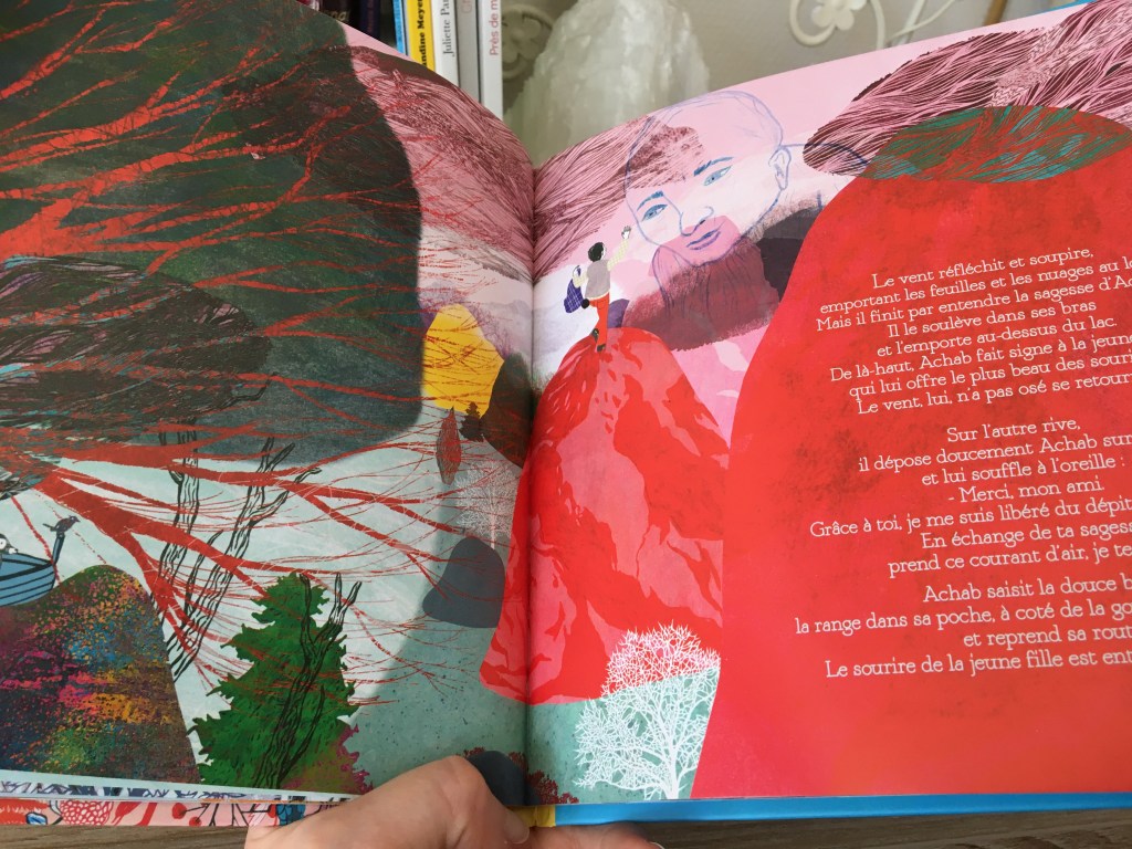 Des jours s’écoulent, Achab arrive près d’un lac. C’est l’automne et le vent souffle, agaçant cette jeune fille aux longs cheveux noirs. Le vent est amoureux, et s’y prend mal pour la séduire. La sagesse n’a pas d’âge, aussi le vent se rend aux conseils d’Achab et, tout en déposant le garçon de l’autre côté du lac, il tourne la page de cet amour à sens unique. Le garçon peut continuer son chemin.