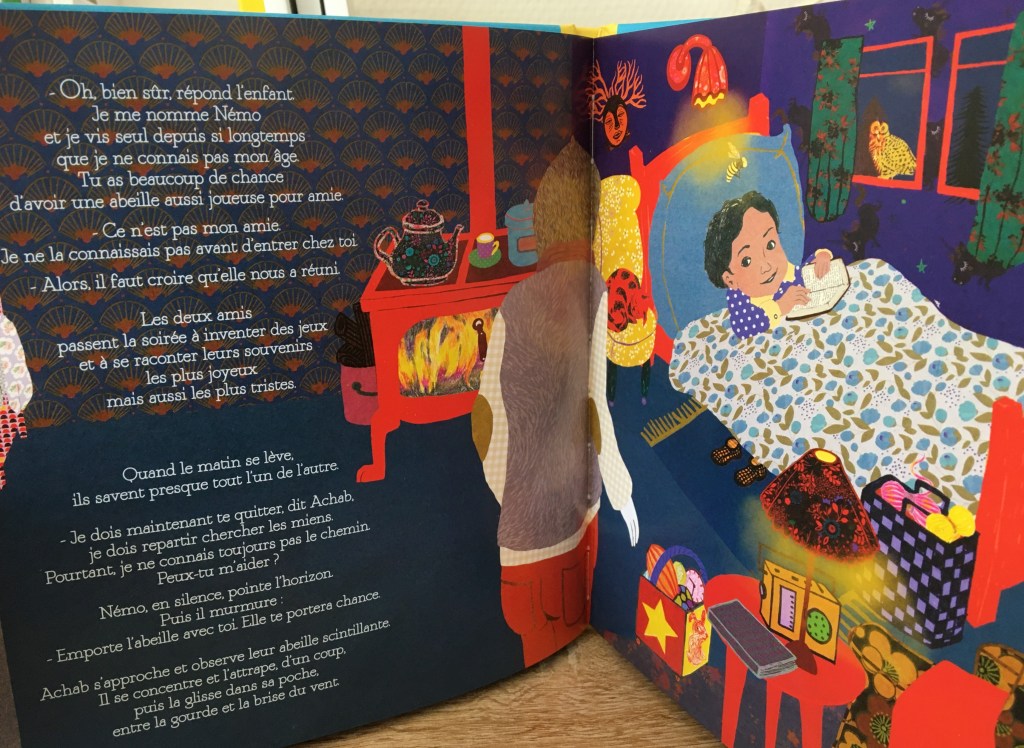 Grandir c’est partir de personne pour devenir quelqu’un. C’est faire connaissance avec soi, avec nos émotions, avec nos ressources. Les jours succèdent aux saisons. Cela demande du temps. Les clins d’œil à Alice, Harry Potter, Merlin l’enchanteur et autres pourvoyeurs de rêves semés par l’illustratrice réveillent un sourire complice : qui sont les héros qui ont illuminé votre enfance ? Eux aussi ont certainement connu un chemin parsemé d’embuches et de questions existentielles. Edwige Chirouter, y va de ses petites touches également : Némo et son livre de contes me rappellent que les histoires maintiennent en jeunesse et fraîcheur notre enfant intérieur, telles des fondations inébranlables.
