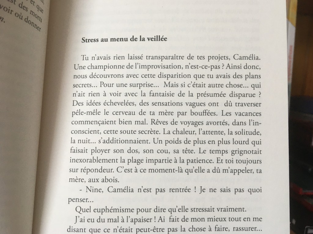 A qui pourrait-on envoyer ces quelques mots ? A Camélia, l’adolescente qui disparaît brusquement ?