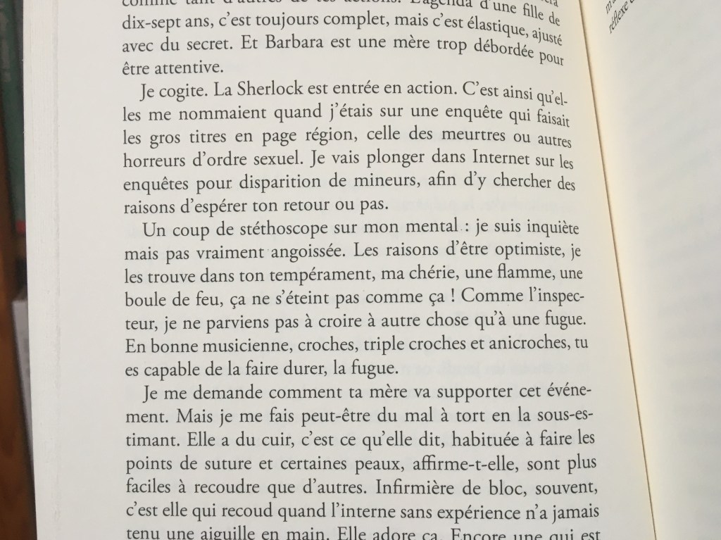 Pour le pitch on rejoint l’histoire alors que Camélia, 17 ans, vient de disparaître. Elle est partie un soir en scooter et n’est pas rentrée, laissant dans l’inquiétude sa mère Barbara, sa grand-mère Jeannine (dite Nine), et Jasmin sa jumelle. Le père dans l’histoire ? Il est à New York et absent depuis longtemps, aussi il n’aura que peu la parole avant la fin. C’est Nine qui raconte, enquête, s’entête, puis qui accepte bon gré mal gré cette cruelle crise d’ado. Quand on ne peut avoir prise sur l’autre, le mieux est d’attendre que ce dernier décide de lui-même de se montrer.