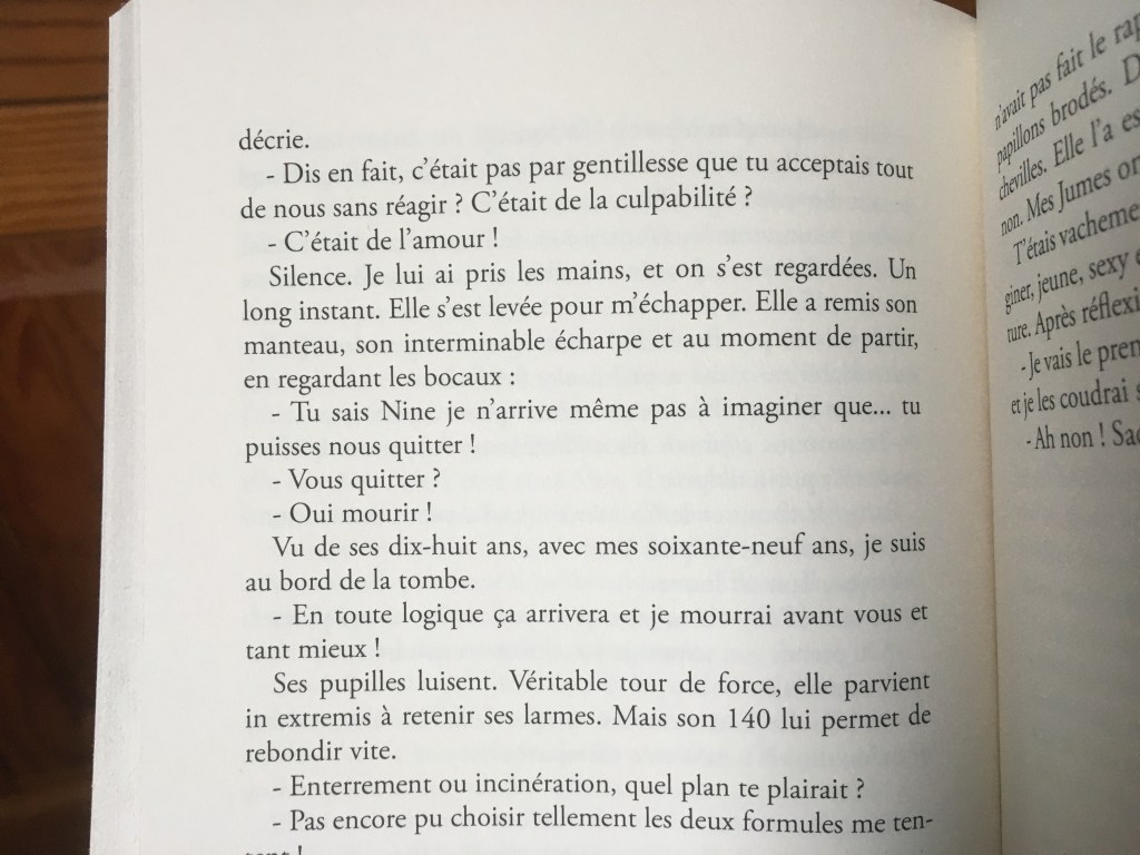 Vivons donc, n’est-ce pas là une toile de fond…impérieux message de celle qui devenue grand-mère sait…que le temps perdu ne se rattrape plus. Ce roman subtil est édité « adulte », pourtant je pressens qu’il pourrait faire le bonheur de lecteurs adolescents…et susciter bien des discussions en famille. Décapant par moment, résolument tendre, désirant si fort, tissant des ponts entre les générations, ma lecture fut délicieuse : j’en redemande !