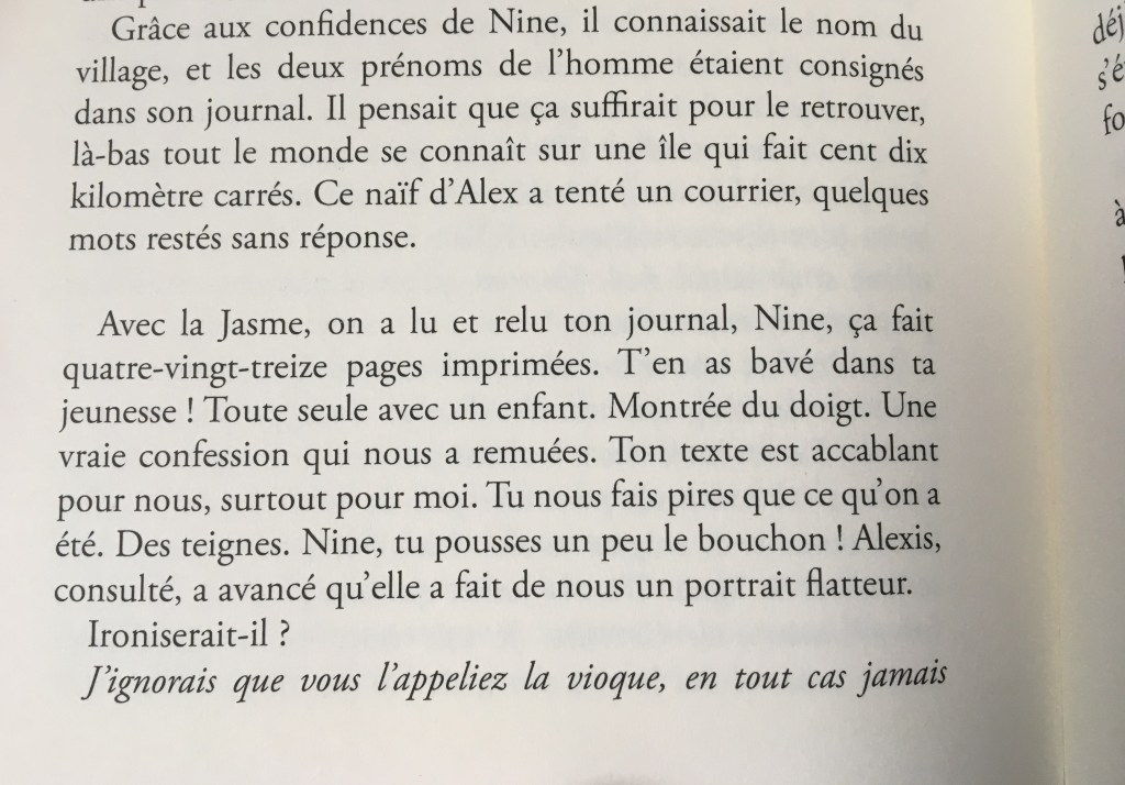 Le roman est un subtil tressage entre hier et présent, entre confidence et questionnement, entre révolte et voyage.