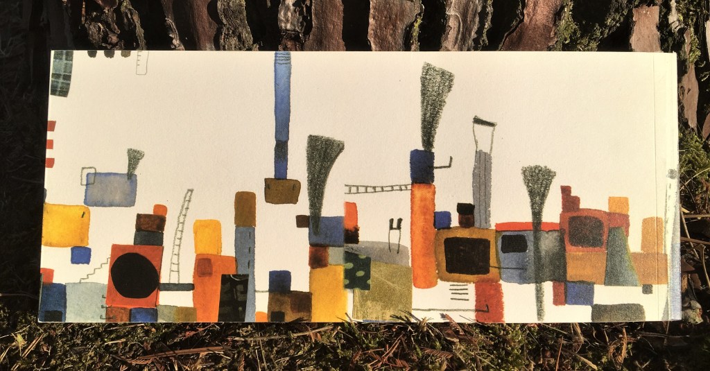 Dans un format à l’italienne, les pages au papier pelliculé emmènent le lecteur-voyageur dans un trajet à travers les méandres urbains. Avec sobriété, le texte évoque la monotonie d’une vie qui ne connaît de la ville qu’un même trajet, identique jour après jour. Les verbes sonnent, matérialisent le trajet, le mouvement : » je glisse (…) je cahotte (…) je brinqueballe (…) ». Objet réduit à une fonction utilitaire, transparent aux yeux du monde il fait ce qu’on attend de lui. Après tout, qui se soucierait de savoir s’il ressent quelque-chose ?