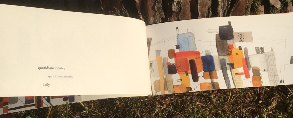 J’ai eu la déception d’apprendre que les éditions La compagnie créative n’existaient plus. C’est bien dommage…toutefois je suis très heureuse d’avoir croisé cet ouvrage, véritable livre d’art pouvant toucher tous les âges dans bien des pays. Merci Chloé Franscisco Trenti pour tant de beauté accompagnée de la musicalité de trois idiomes. C’est un plaisir de dépasser, avec cet ouvrage, nos rails habituels.