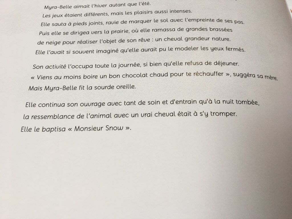 Sortir en plein milieu de la nuit pour sauver son cheval de neige, en faut-il de la détermination ! Vient le jour où les enfants s’affirment, font des choix, défendent des points de vue, acquièrent des convictions parfois, prennent des petits ou gros risques aussi. C’est ainsi qu’on apprend !
