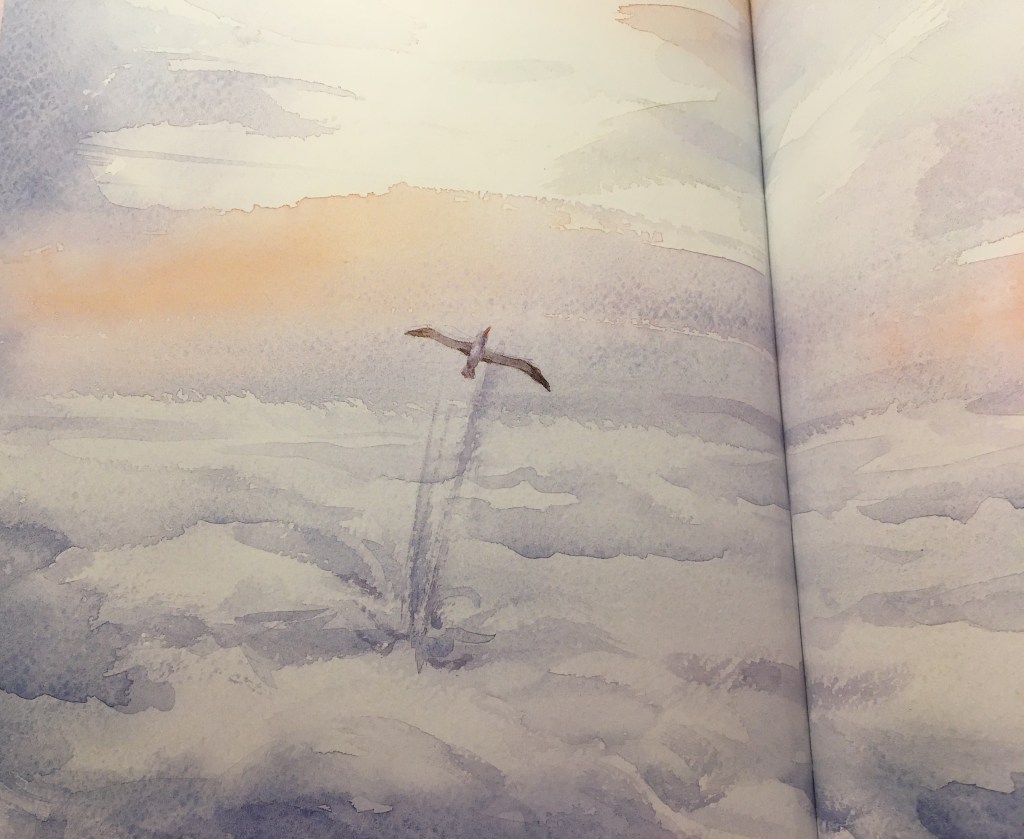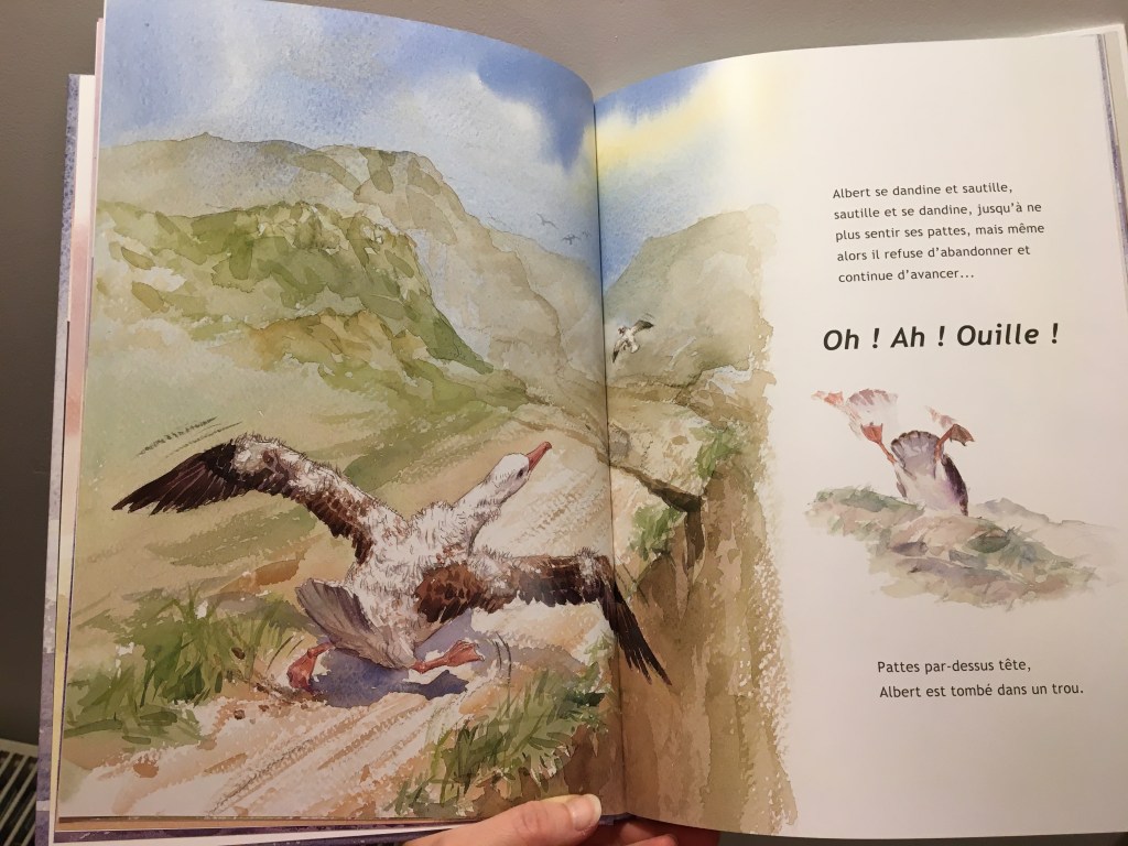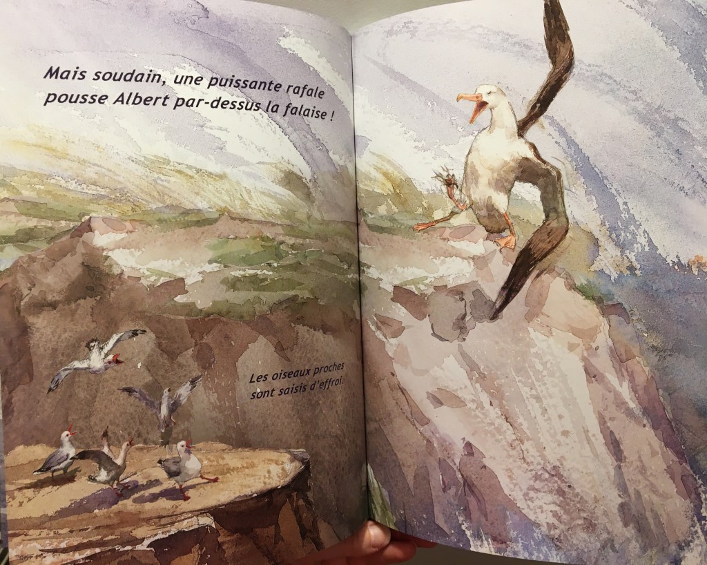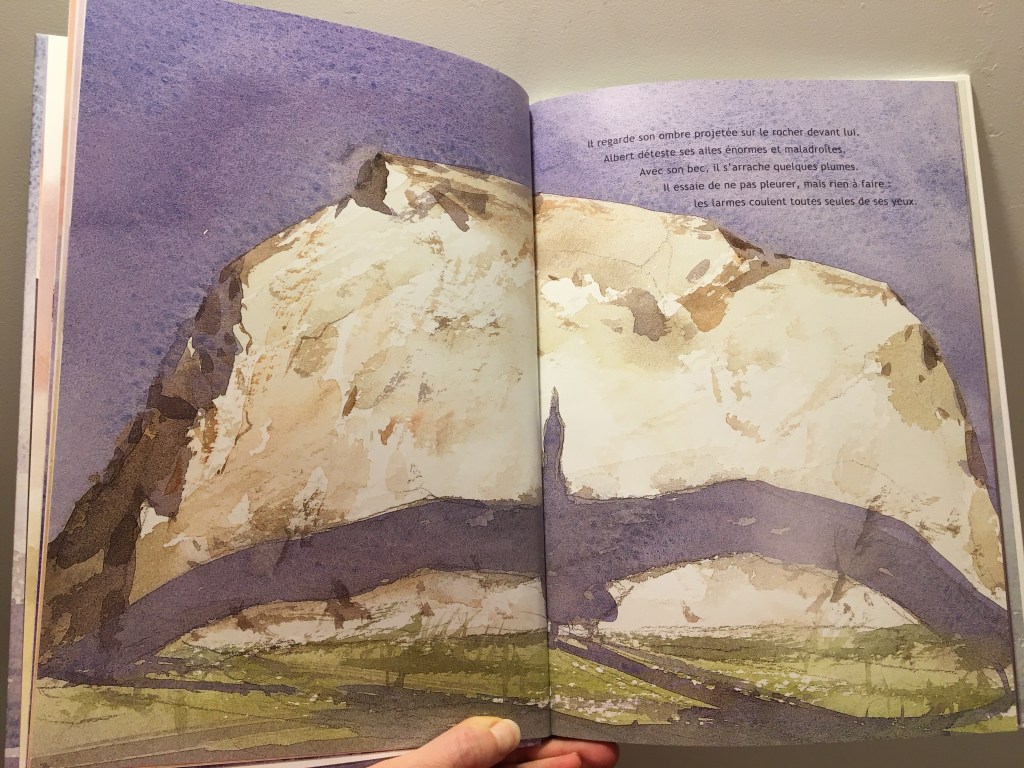 Ce qui me touche particulièrement dans cet album, c’est l’amitié façon envers et contre tout. La petite mouette prend sous son aile le roi des oiseaux. Il l’encourage, il reste présent. Il a vu lui, le potentiel de son ami. Il ne doute pas. Il sait de quoi Albert sera capable avec ses ailes majestueuses.