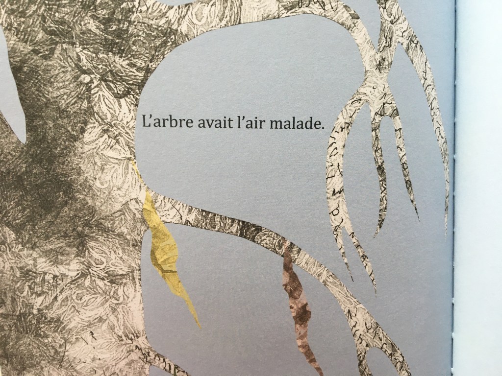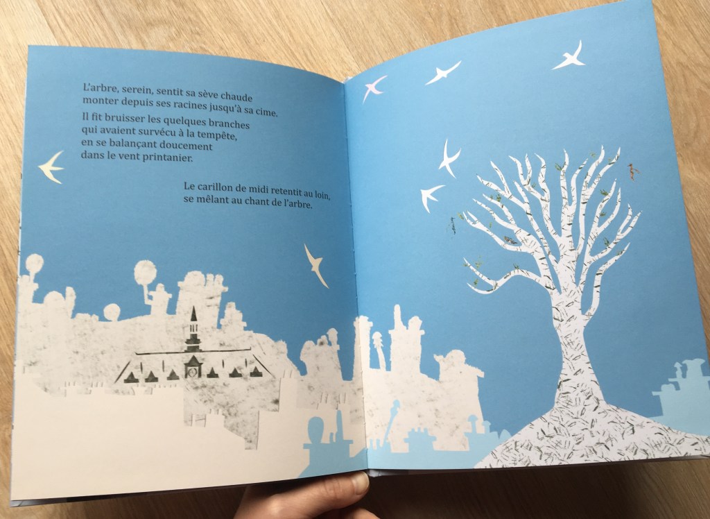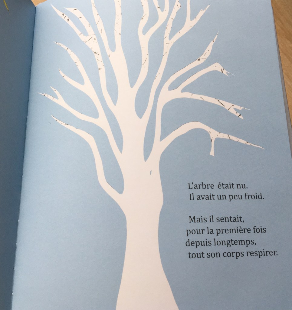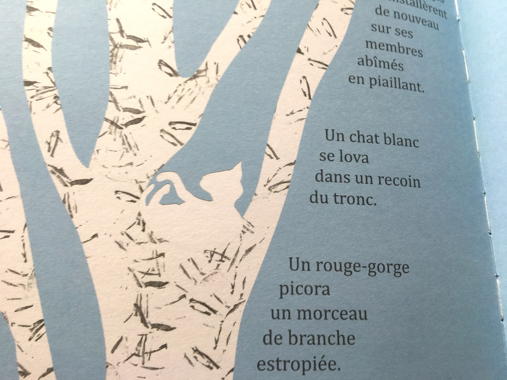 Un arbre vivait en ville. Les saisons lui offraient de quoi rayonner : couleurs, lumière du soleil, lueurs de lune ou compagnie des coccinelles. Quand la belle saison au loin s’étire, ce sont les animaux de la ville qui font une pause de quelques minutes sur ses branches nues. L’arbre est heureux : il aime avoir de la compagnie.