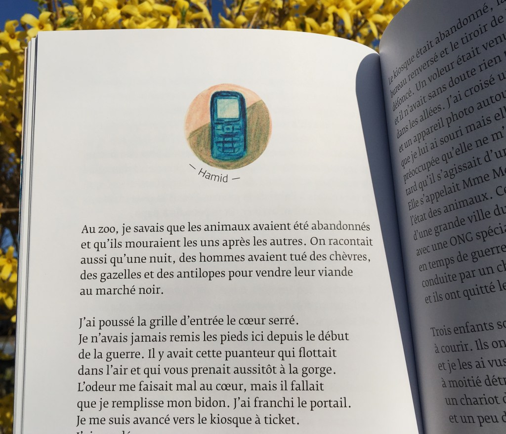C’est encore un déferlement de sentiments qui m’a traversée tout au long du roman. Impossible ne pas songer à l’actualité, ni de relier le désespoir d’Hamid et Maya à celui qui est relayé en permanence par les médias. La guerre semble être un catalyseur de survie mais tout le monde ne paye pas le même tribut. Il y a ceux qui fuient, ceux qui restent, ceux qui comprennent, ceux qui insultent. Il y a ceux qui partent à la guerre, comme le père de Maya. Il y a ceux qui soignent jour et nuit les blessés. Il y a ceux qui en profitent pour mettre en place des trafics peu scrupuleux. Et il y a ceux qui n’oublient pas les animaux à leur funeste sort.