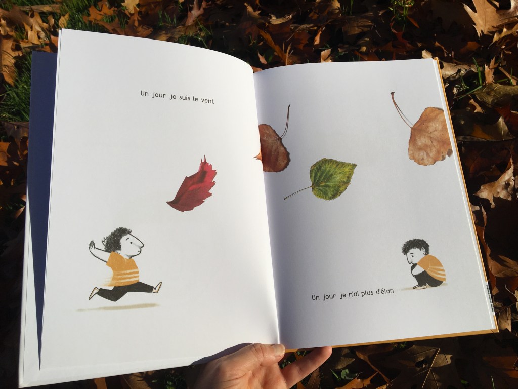 Avant l’arrivée de l’hiver et la renaissance du printemps, la nature et les êtres vivants se préparent au repos. Il me plaît que la représentation des émotions passe par cette saison. Comment ne pas être séduit par l’universalité du thème ? Cet ouvrage s’adresse aux enfants. Pourtant, j’ai la quasi-certitude qu’il saura toucher celles et ceux qui s’émerveillent toujours des feuilles virevoltantes. Tout comme la vie, qui nous fait évoluer en permanence, il faut osciller, être déstabilisé. Parfois comme les feuilles, il nous faut lâcher la branche, se laisser porter par le vent… avant de trouver une branche de confiance pour nous accueillir.