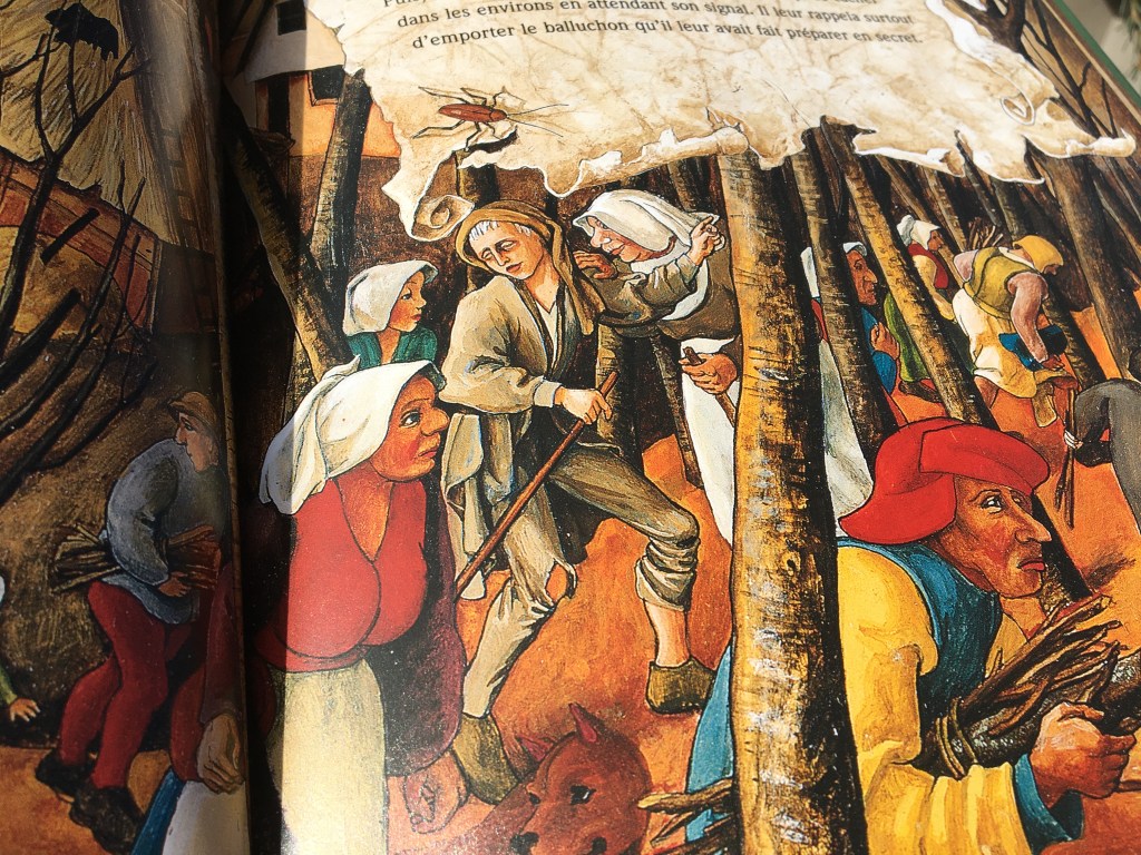 Entre le texte exigeant d’Yves Blanckaert et les illustrations à la fois admirables et rudes d’Anne Buguet, tout y est pour que le voyage soit complet. L’ambiance flamande à la Bruegel l’ancien habite chaque double page. La finesse dans les détails invite à y revenir encore et encore, pour observer les grands paysages ou scruter les insolites éléments deci delà, comme ces curieux lutins ou bien ces escargots rampant sur le parchemin du texte…