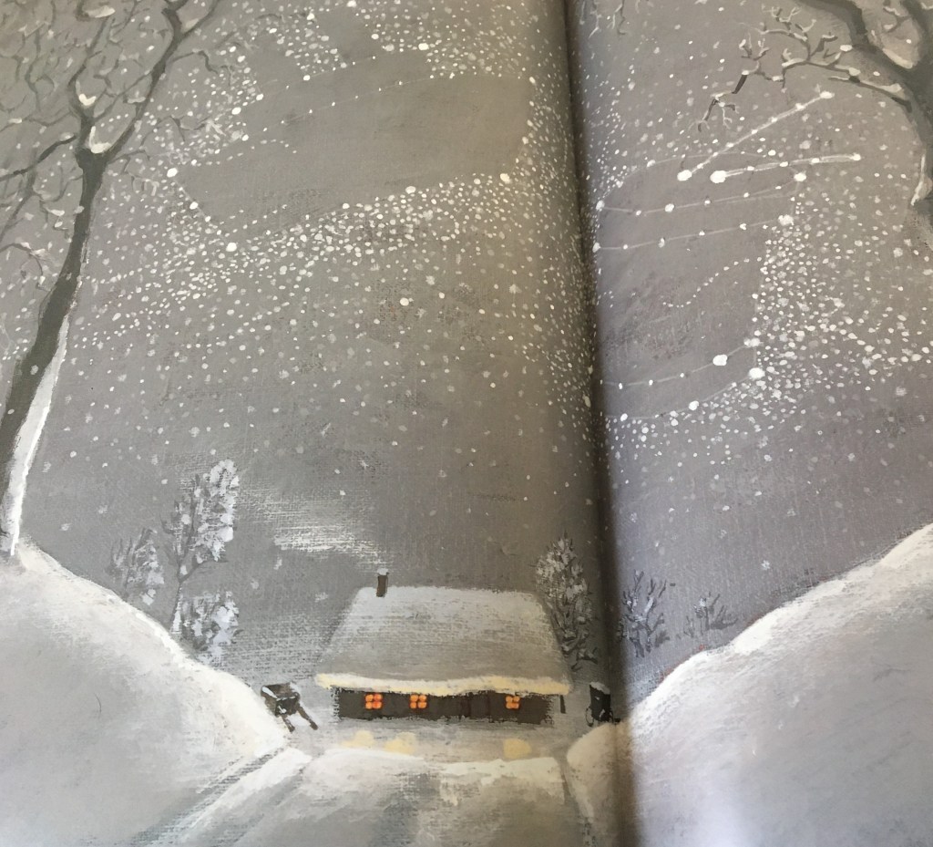 C’est sans aucun doute un des albums de Noël que je préfère. Parce qu’il n’y est pas question de Père Noël, ni de magie. L’histoire s’ancre dans le réel, dans la parenthèse hivernale d’une campagne de jadis où le blanc et le gris recouvrent tout. Parce que le plaisir de se retrouver se manifeste par la confections de petits gâteaux parfumés de cannelle et de fleur d’oranger. Quelle jolie valeur que la perspective du partage de ce qu’on a confectionné patiemment…