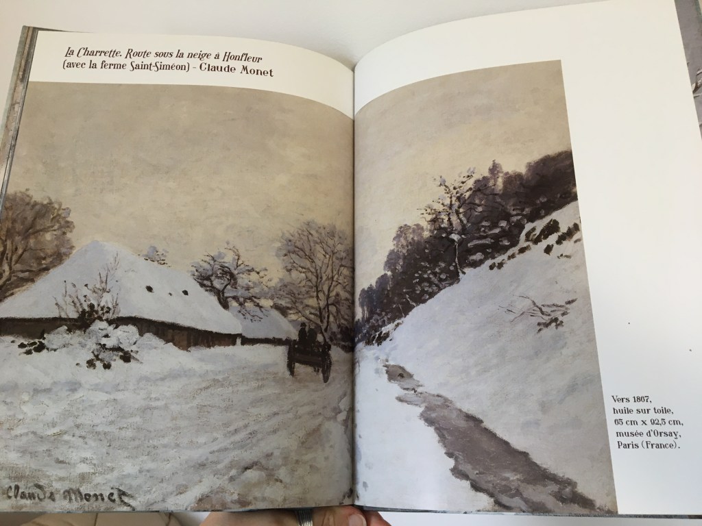 A la toute fin, on découvre LE tableau : La charrette, route sous la neige à Honfleur. Et juste après, la partie didactique qui accompagne tous les ouvrages de la collection Pont des Arts apporte ses éclairages à propos de Claude Monet.