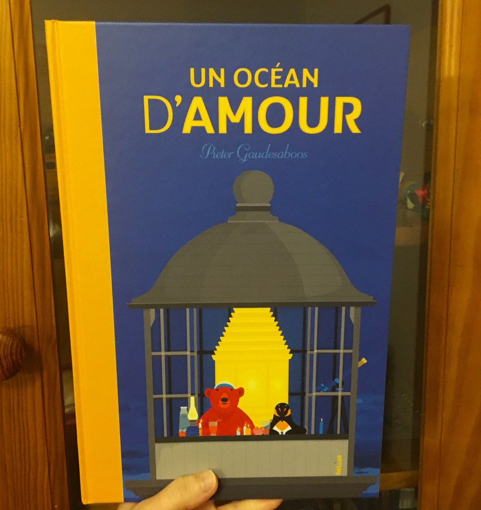 Qui se ressemble s’assemble, paraît-il. Et quand on ne se ressemble pas de prime abord : est-ce cuit d’avance ? Je vais vous faire une confidence : l’amour n’est pas franchement mon thème de prédilection en littérature jeunesse. Par contre l’océan, la mer : oui. Voilà comment je me suis faite totalement cueillir « par hasard » par Un océan d’amour. Je suis touchée-coulée par le tact dont fait preuve Pieter Gaudesaboos en évoquant les difficultés d’accordage. Ours et Pingouin incarnent deux êtres différents, non genrés si bien que n’importe qui pourrait s’identifier à eux. La naissance du sentiment amoureux ne passe pas par des chemins tout tracés : elle est propre à chacun. De même la prise de conscience de son état. Je vois ce livre quasiment comme un mode d’emploi des relations humaines. Le courage du personnage de Pingouin m’attendrit. C’est qu’il en faut pour avouer un sentiment. J’aime que, passée la stupeur, Ours cogite sur ce que son ami vient de lui révéler. Le rejet n’est pas présent : ouf !
