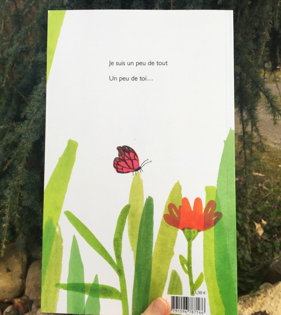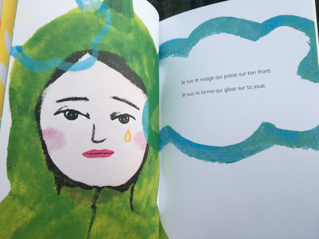 La promenade est sensorielle, poétique. Elle invite à dénicher, fouiller, scruter le quotidien et ses petites magies. Parce que la vie c’est parfois des nuages dans le ciel, parfois dans notre humeur. Une larme qui ruisselle sur la joue : est-ce un gros chagrin ou une goutte de pluie ? Est-ce le bruissement de l’arbre qui se fait entendre, ou celui de la fleur, du papillon qui bat des ailes… Qui sait ?