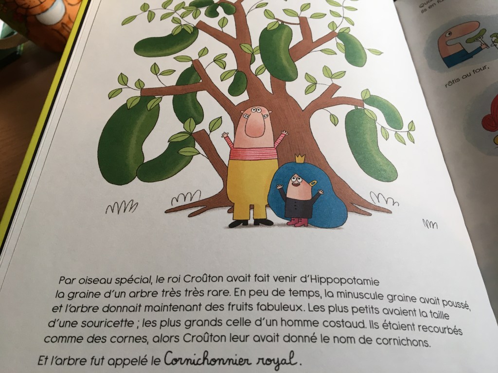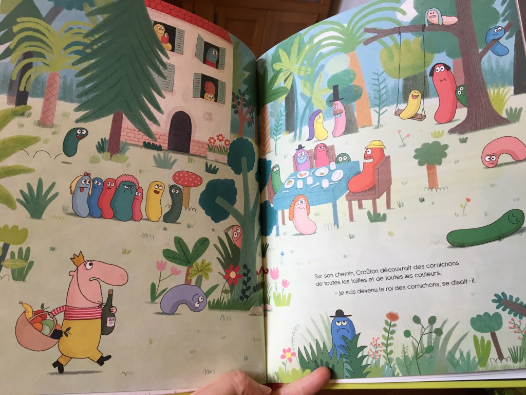 Le roi Croûton le Bien-Aimé règne paisiblement sur son royaume où la nourriture est abondante et les habitants gentils. Avec la reine Bégonia et leur fille la princesse Bleuette, ils profitaient sereinement de leur havre de paix. Jusqu’au jour où tout allait être chamboulé : une graine de cornichon arriva céans. Et ce qui devait arriver arriva, tout le monde se mit à consommer des cornichons car le Cornichonnier royal était un arbre très productif, et que « tout est bon dans le cornichon » (c’est bien connu).