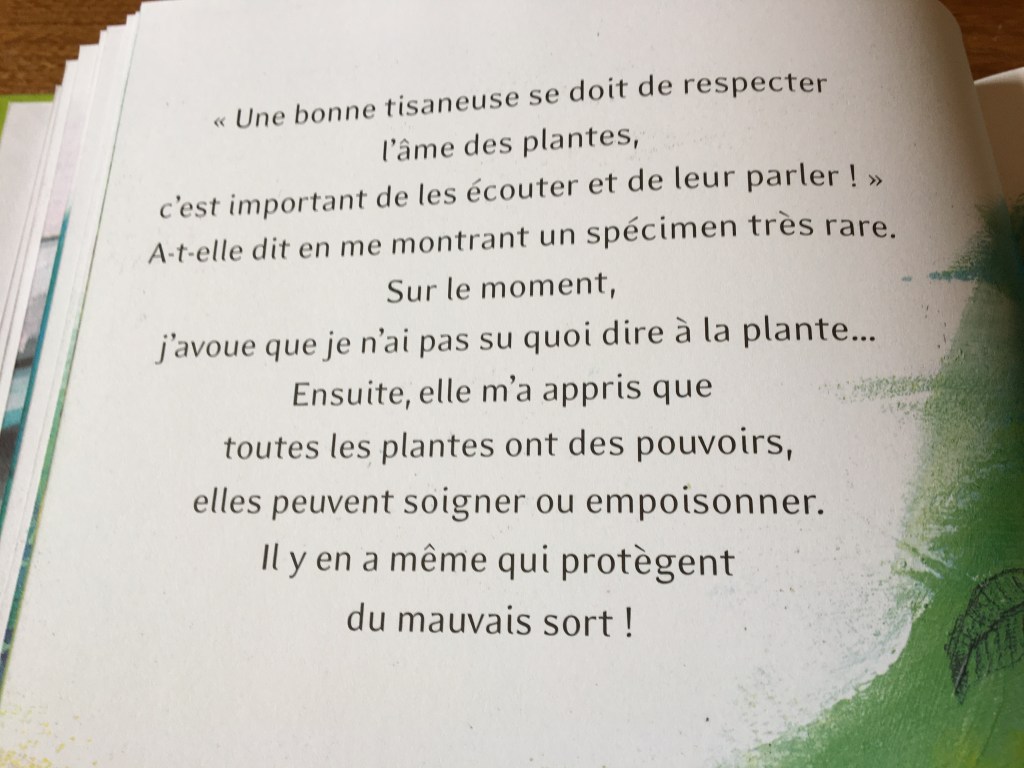 Qu’il est savoureux de plonger dans cet album, où l’on rencontre les traditions dans l’ici et maintenant. Point besoin d’avoir fait des années d’études pour cultiver le bon sens et un coin médicinal dans son jardin. Avec une pincée de poésie et des pages transparentes comme un voile qui se lève doucement, La Tisaneuse envoûte, infuse, nous prend par la main et susurre « prenez le temps… »