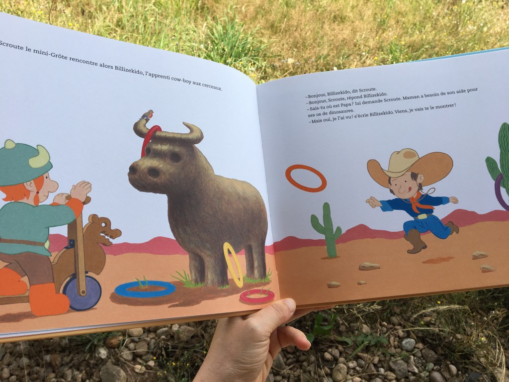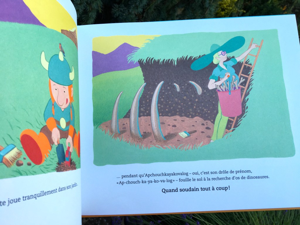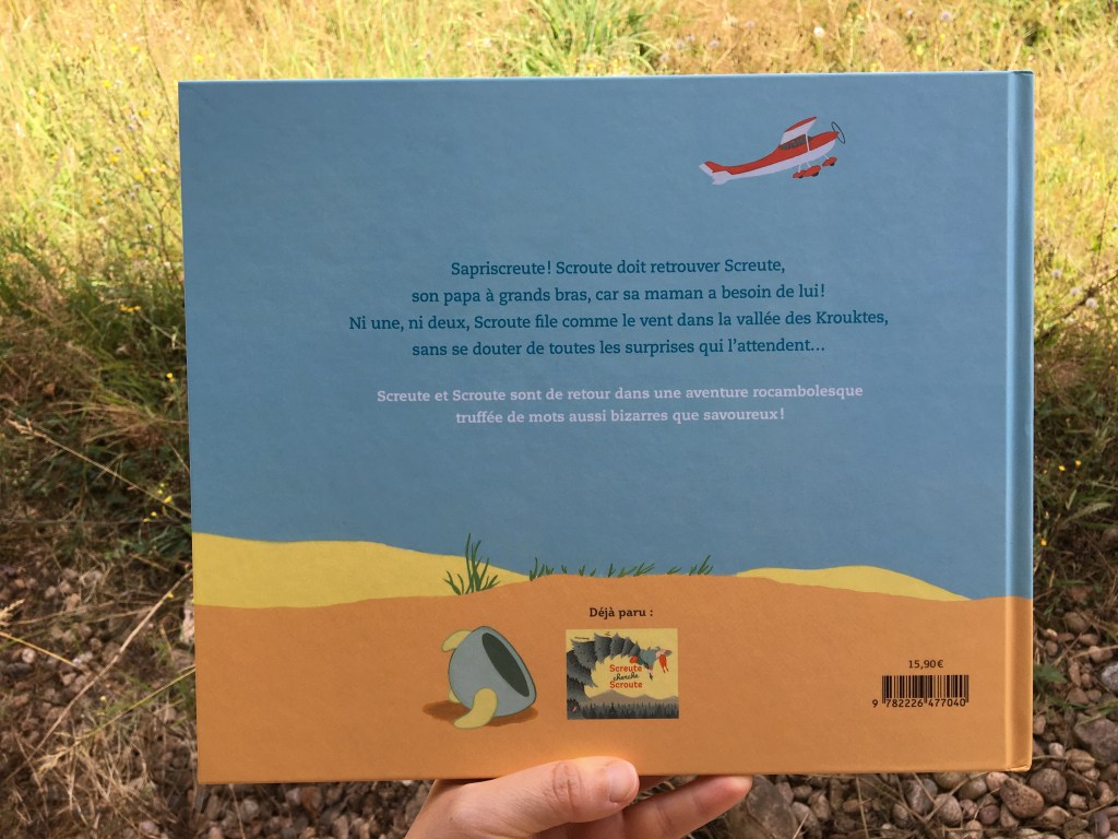 Cette fois ce n’est pas Screute qui cherche son petit Scroute : c’est l’inverse. Scroute part dans la forêt des Krouktes chercher son « papa-Gröte-qui-saura-quoi-faire », alias « papounet en sucre », alias encore « papa-doudou ». Et il y a urgence : l’amoureuse de son papa, la célèbre paléontologue Apchouchkayakovalog (avec un peu d’entraînement, je vous promets que ça deviendra presque naturel à prononcer) a perdu « ses os » …