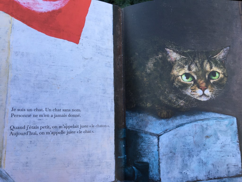 Être nommé pour commencer à exister… pour refuser des qualificatifs désagréables. C’est l’espoir de la sécurité, accéder à un autre destin que celui d’animal de la rue. Si le chat sans nom se nomme lui-même, il renonce à la possibilité qu’on lui offre un nom, une reconnaissance et peut-être… une vie ?