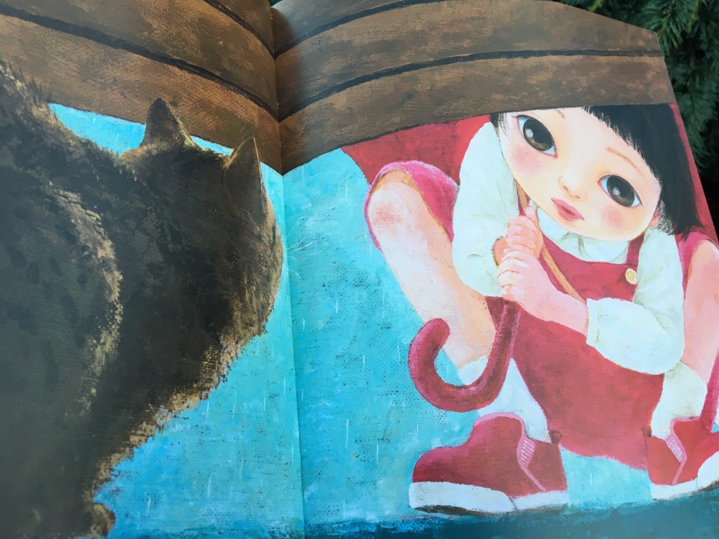 Que de tristesse dans ce petit cœur de chat. Sous la pluie, tout paraît plus morose, sauf la voix de cette fillette qui, très spontanément, lui fera cadeau d’un nom.