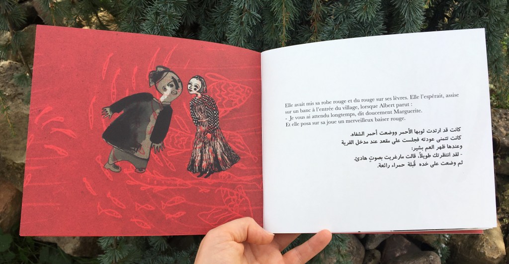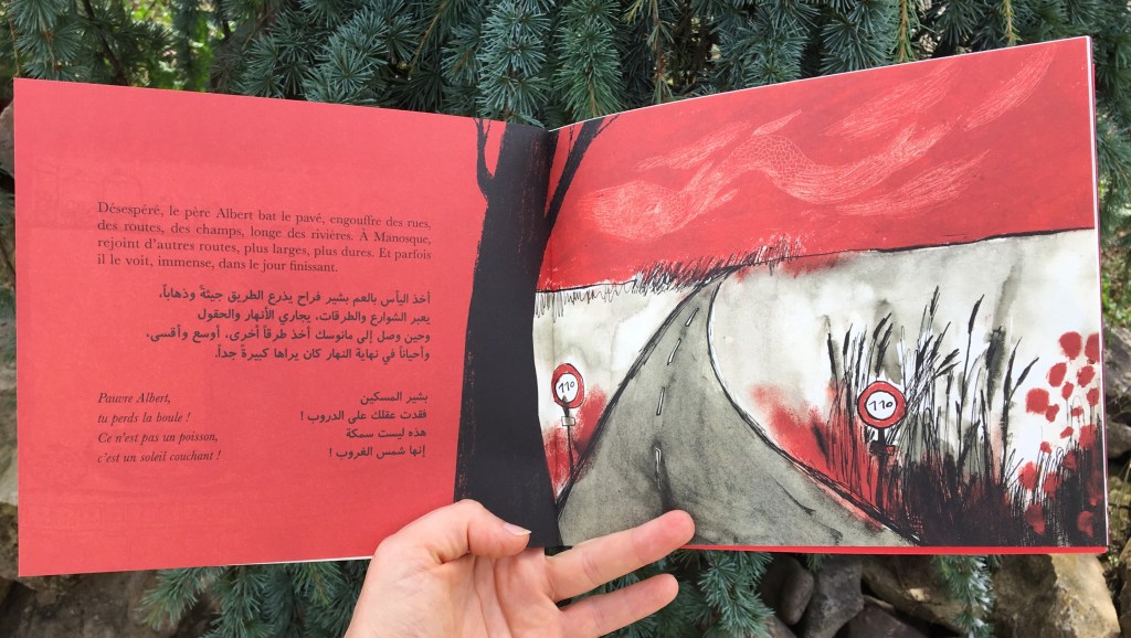 Recto-verso, avant la fin, avant le retournement de situation c’est l’ouvrage qui nous met la tête à l’envers ! Tant qu’à être un album bilingue français/arabe, autant donner aux lecteurs la chance de changer un peu ses habitudes. Albert a dû faire un long voyage pour déposer ses illusions aux flots ; nous, nous avons quelques pages pour nous initier à une autre lecture.