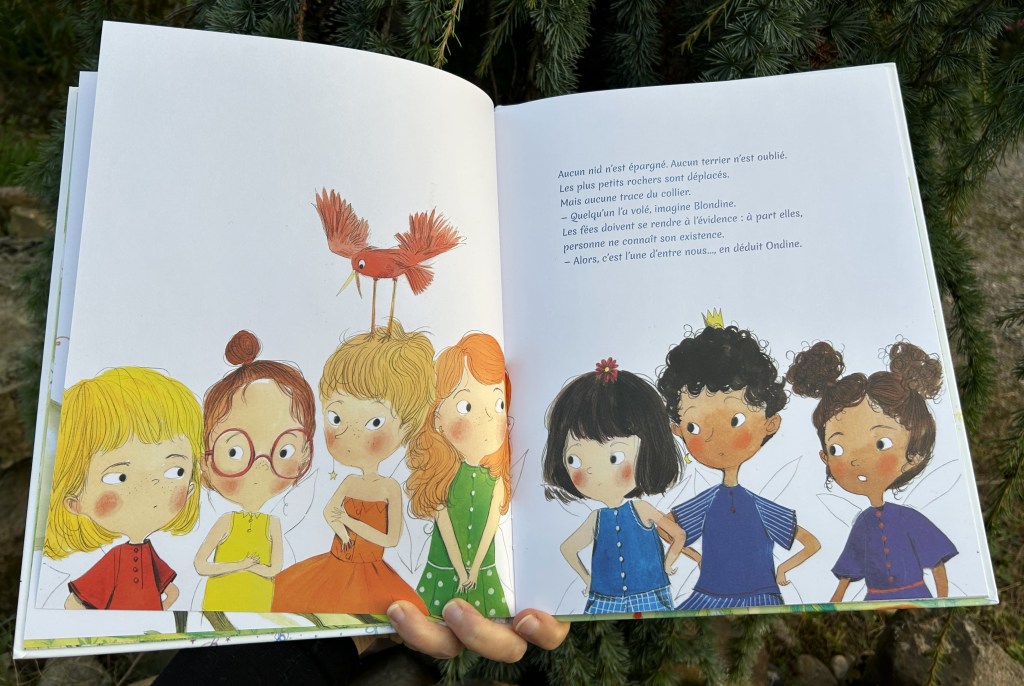 Oui mais quand Capucine découvre que son collier en perles de rosée a disparu, c’est le drame. Qui a bien pu le prendre ? Branle-bas le combat, toutes les fées s’y mettent. Les environs sont scrutés, fouillés. Des objets sont retrouvés pour la plus grande joie des petites propriétaires, mais aucune trace du collier. Se pourrait-il que quelqu’un l’ait volé. Mais par qui : une fée ???